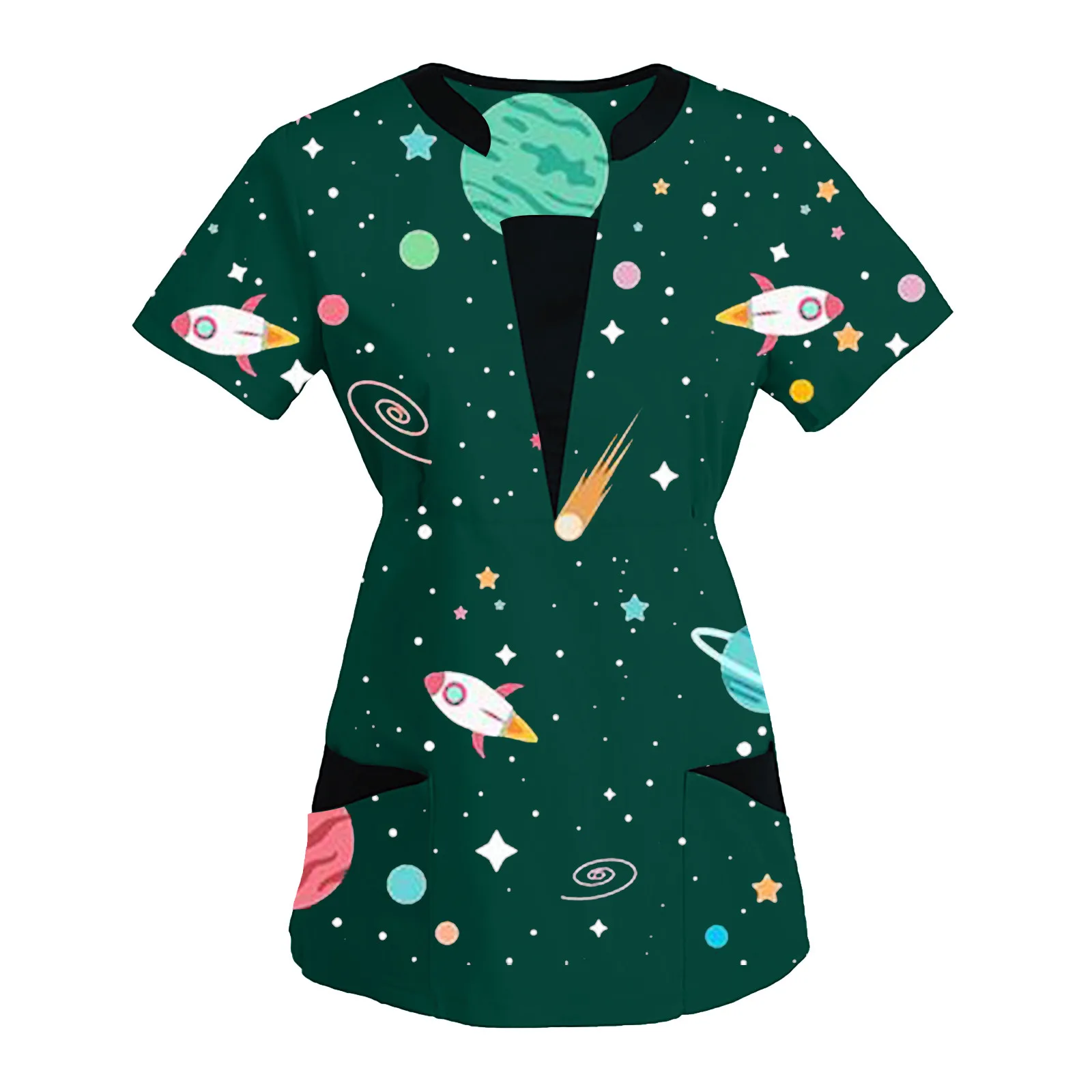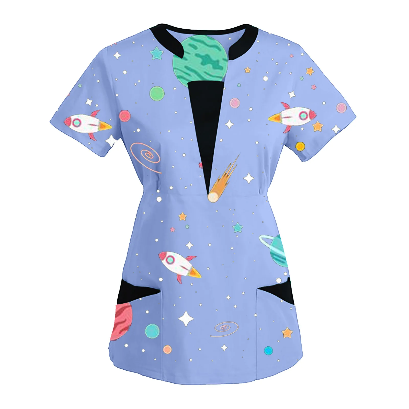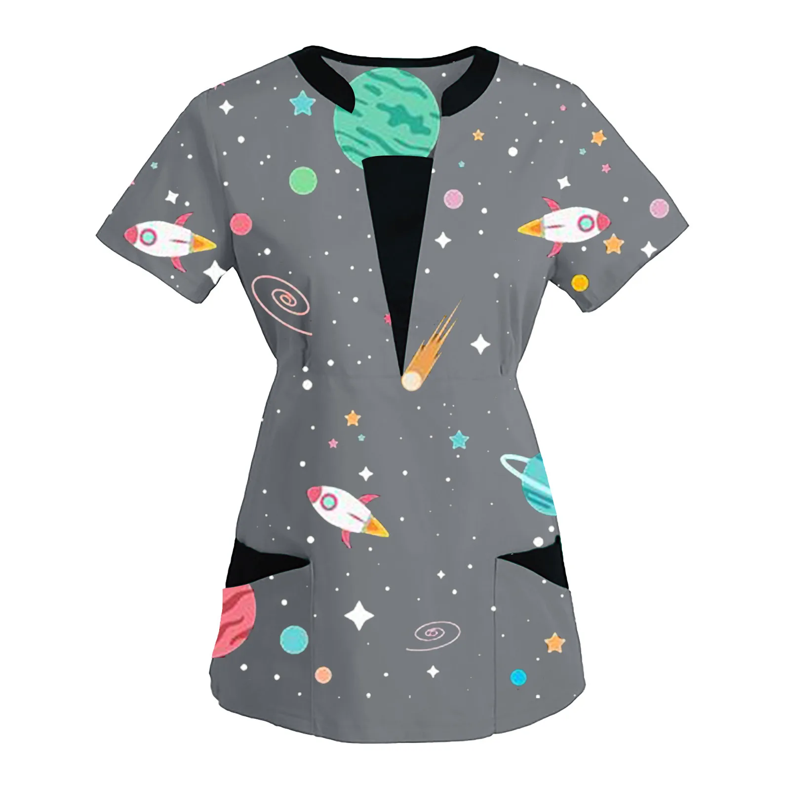 Блузка Женская рабочая с V-образным вырезом и коротким рукавом