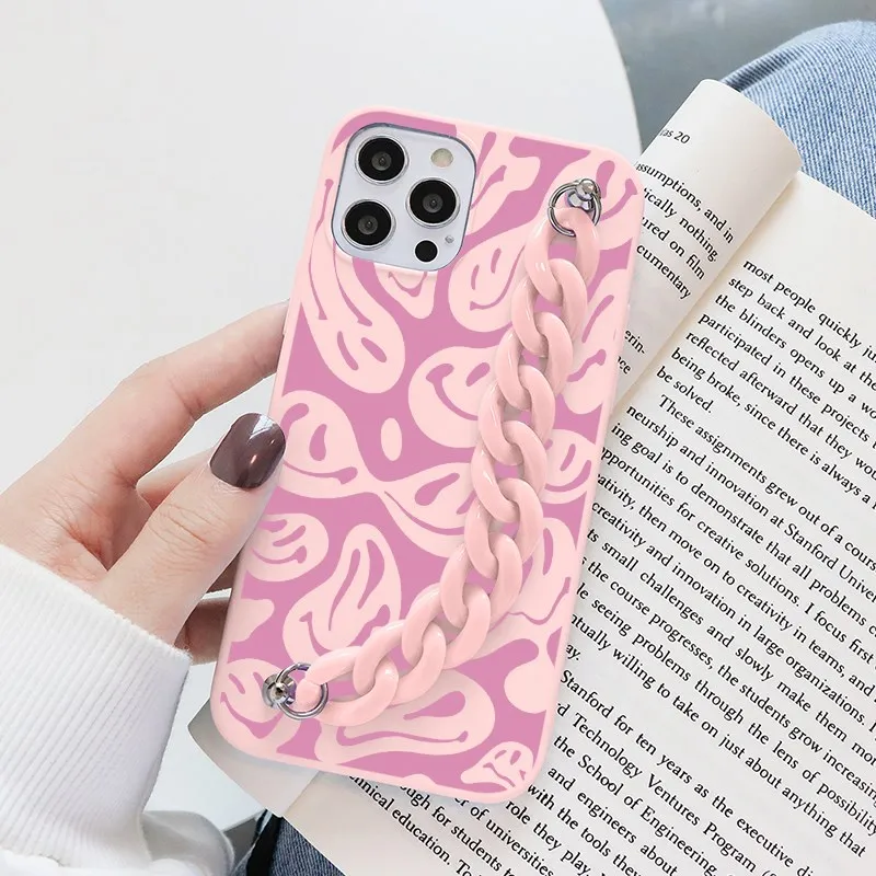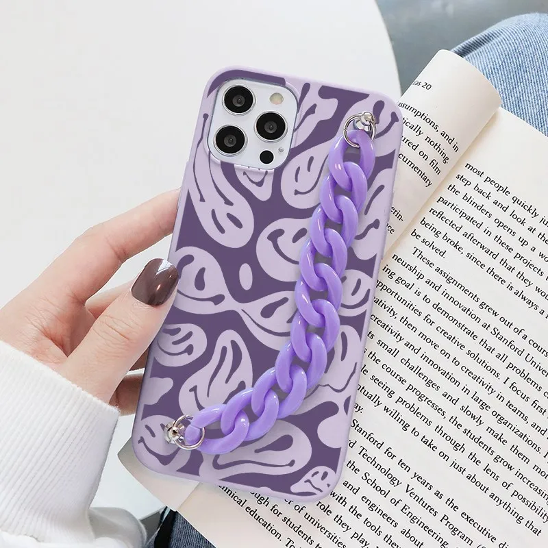 Чехол с цепочкой на запястье для Huawei P30 P20 Pro Honor 9X 8X 8A 9C 10i Mate 20 P40 Lite E Pro P Smart 2021 Y7 Y6 Y9 2019, чехол с изображением смайлика