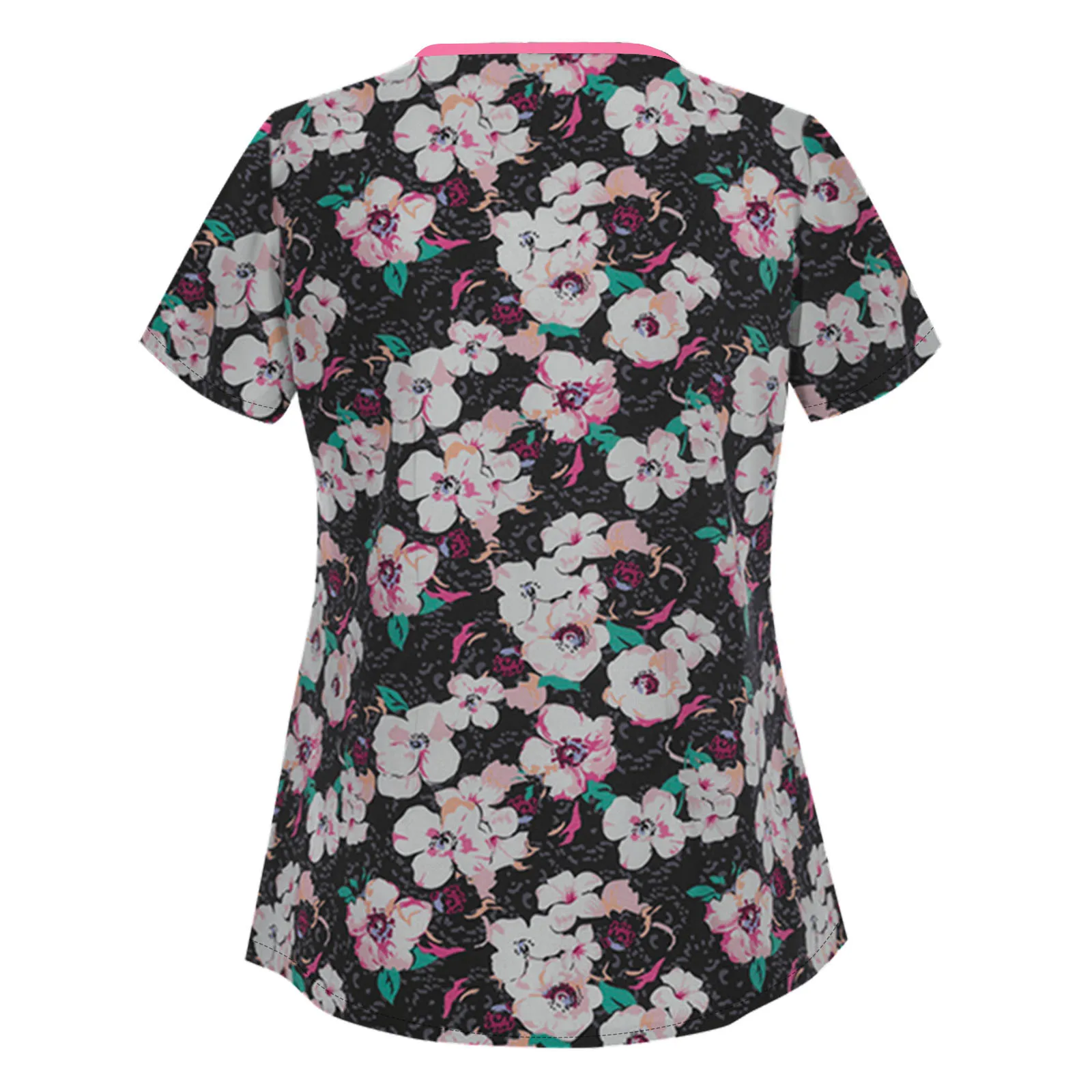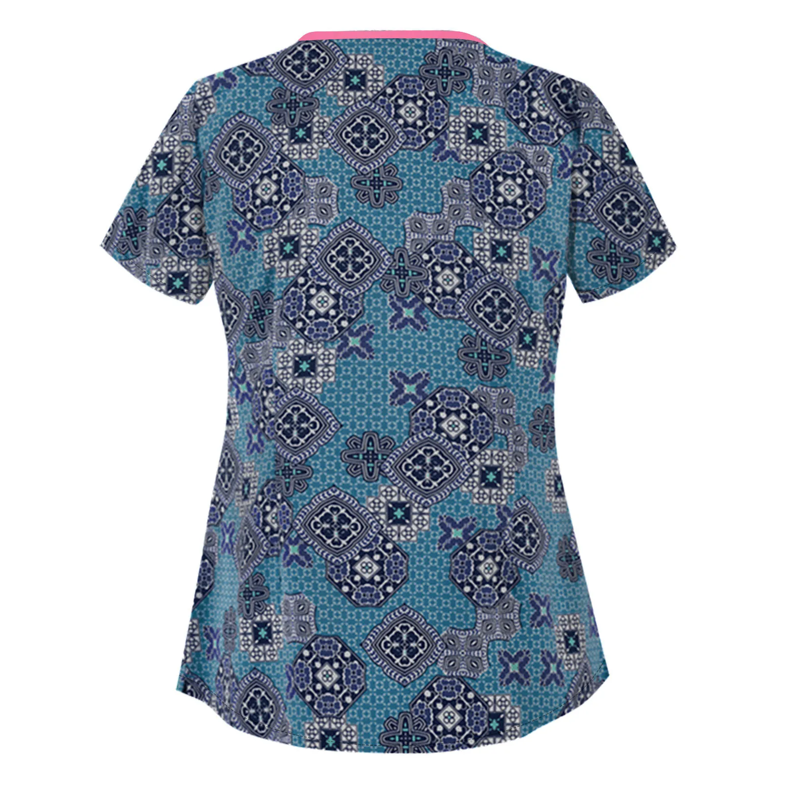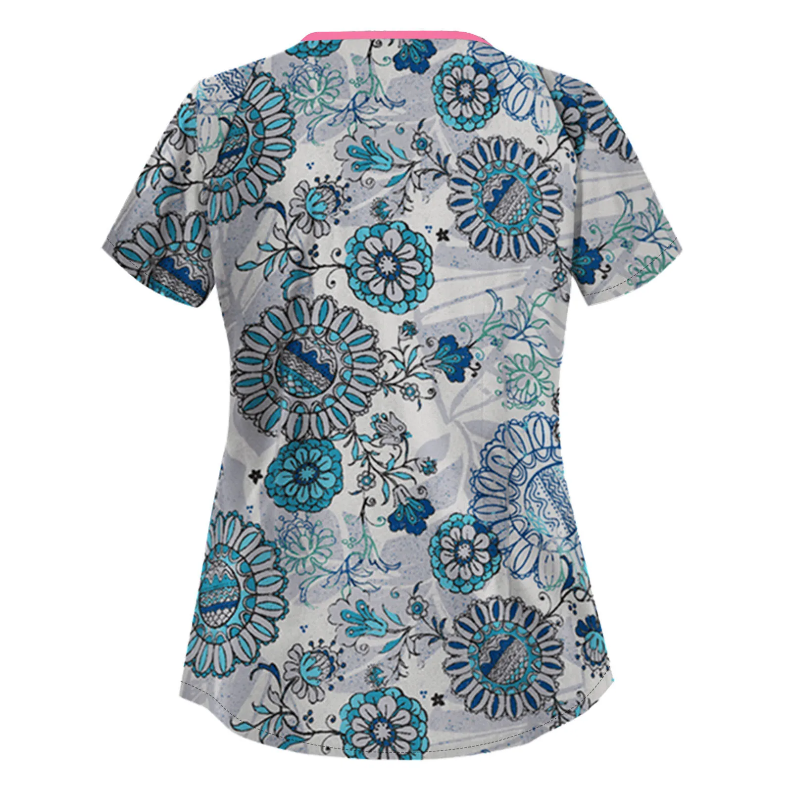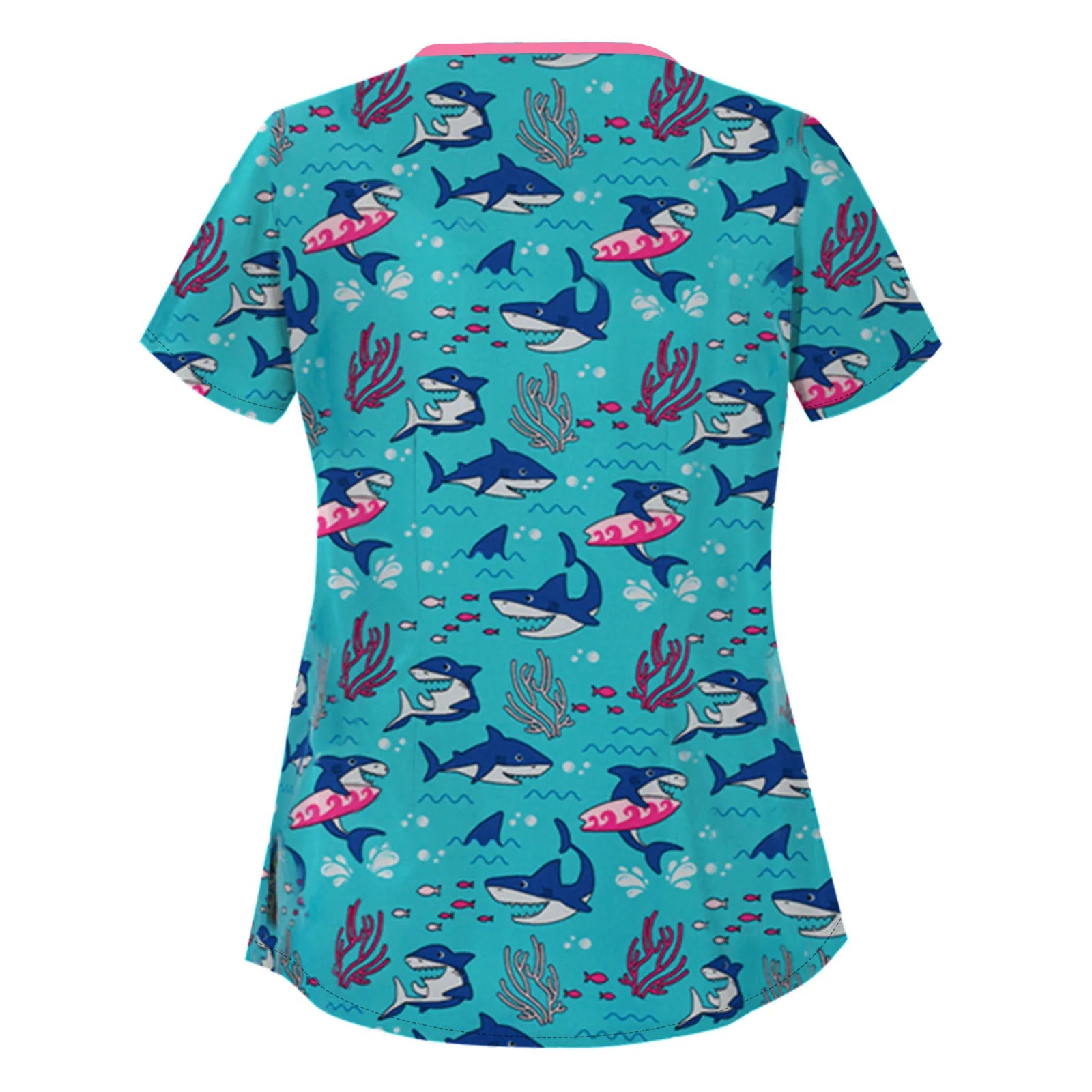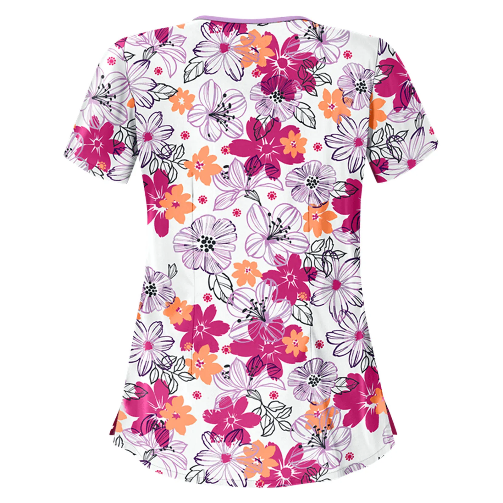 Женская рабочая одежда, футболка с коротким рукавом, V-образным вырезом и карманами, летняя униформа для женщин, топы, сексуальная форма медсестры с принтом, блузка для клиники