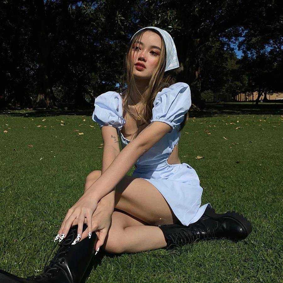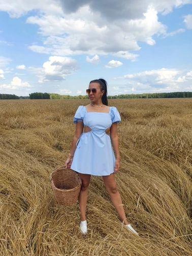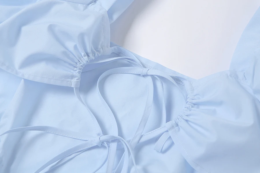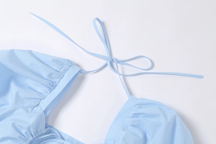 Женское летнее платье с рукавами-пузырями и завязками на спине