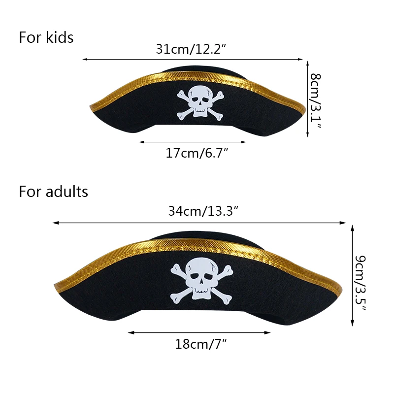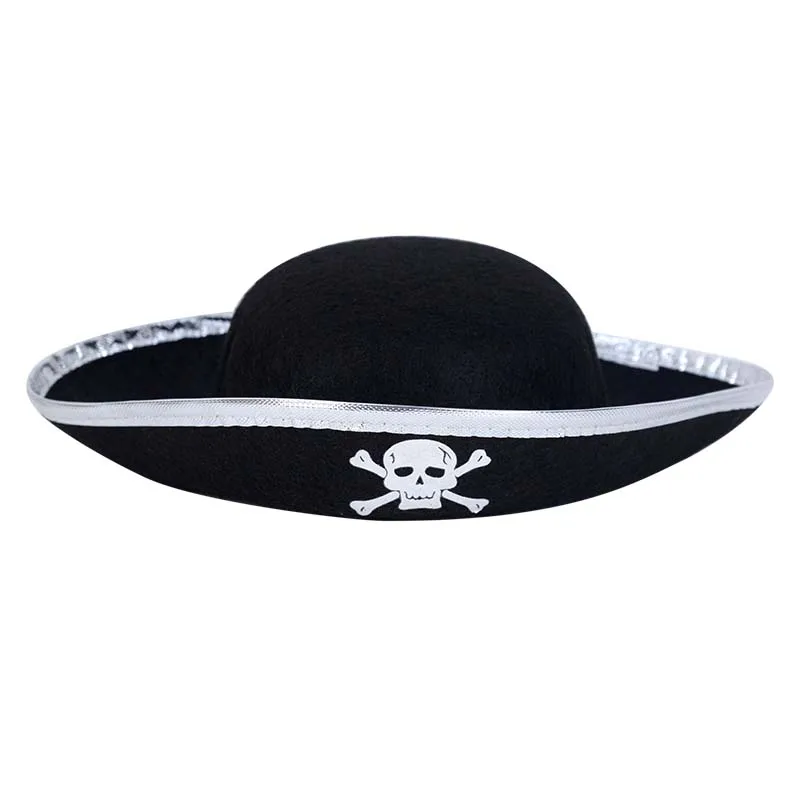 Пиратская шляпа для детей и взрослых, декор для косплея на Хэллоуин, фетровая шляпа, кепка с пиратским черепом, шапка для маскарада, шапка для вечевечерние НКИ на Хэллоуин, реквизит для косплея