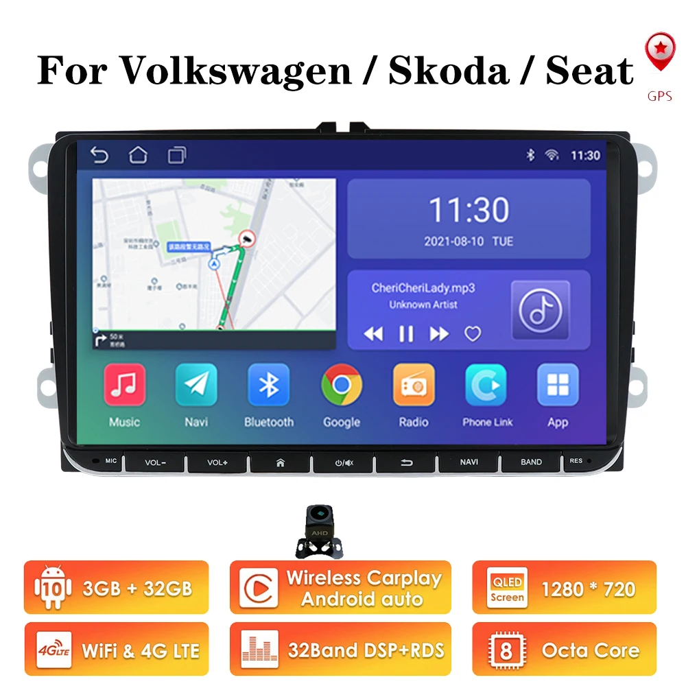 Автомобильный GPS-навигатор, мультимедийная система на Android 10, с 9 "экраном, Wi-Fi, для POLO GOLF 5, 6, PASSAT B6, CC, TIGUAN, SCIROCCO, CADDY, типоразмер 2DIN