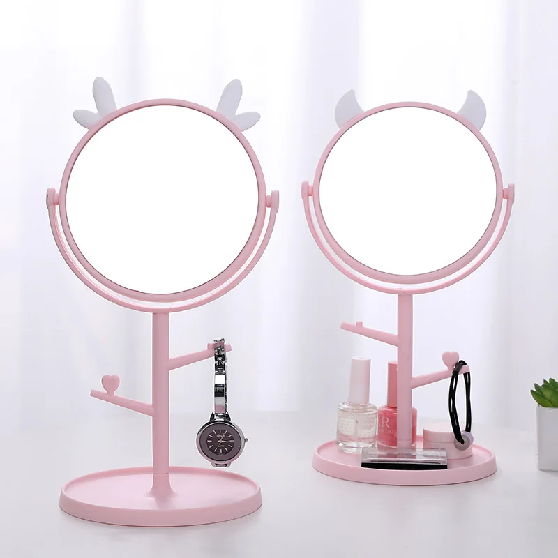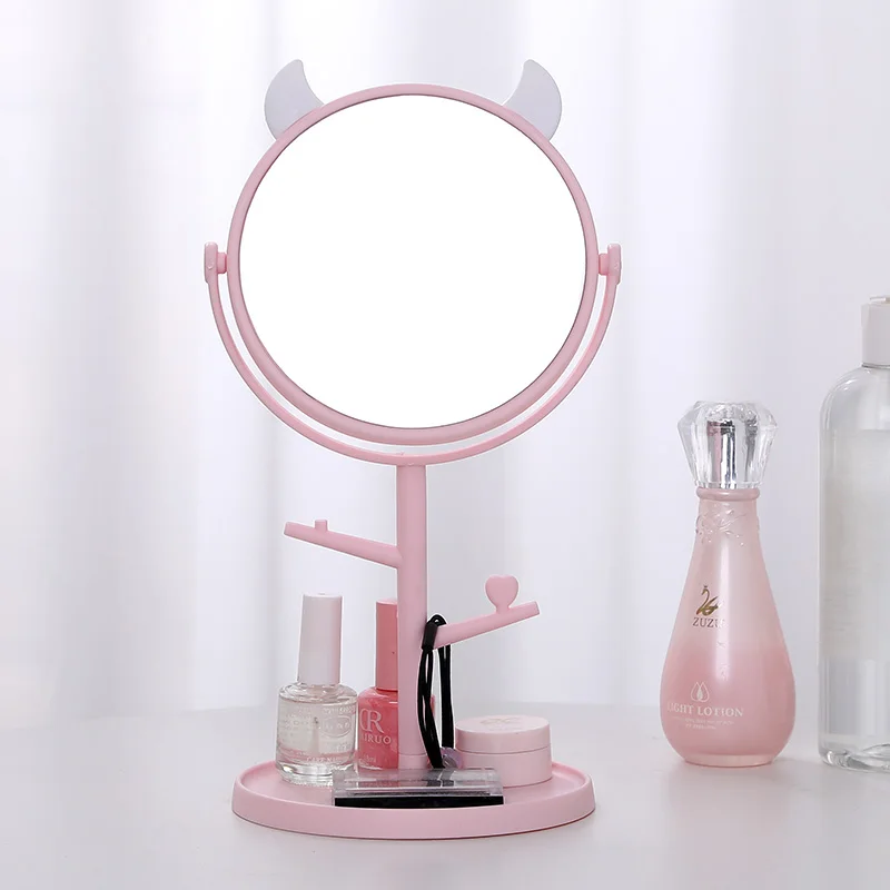 1 шт. вращающееся собранное зеркало для макияжа настольная подставка для ванной дорожное обычное розовое зеркало с кошачьими ушками