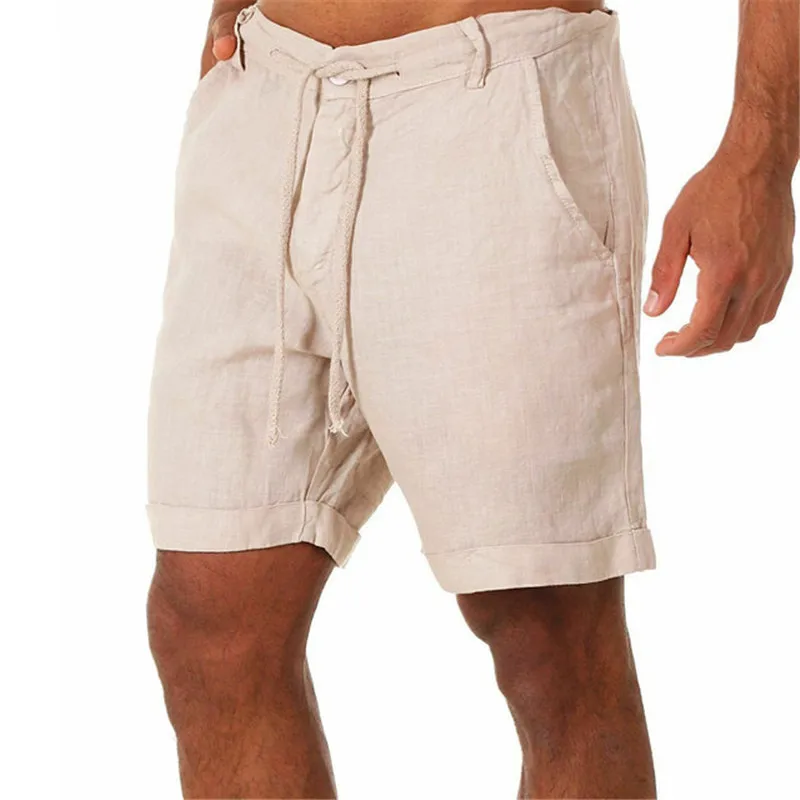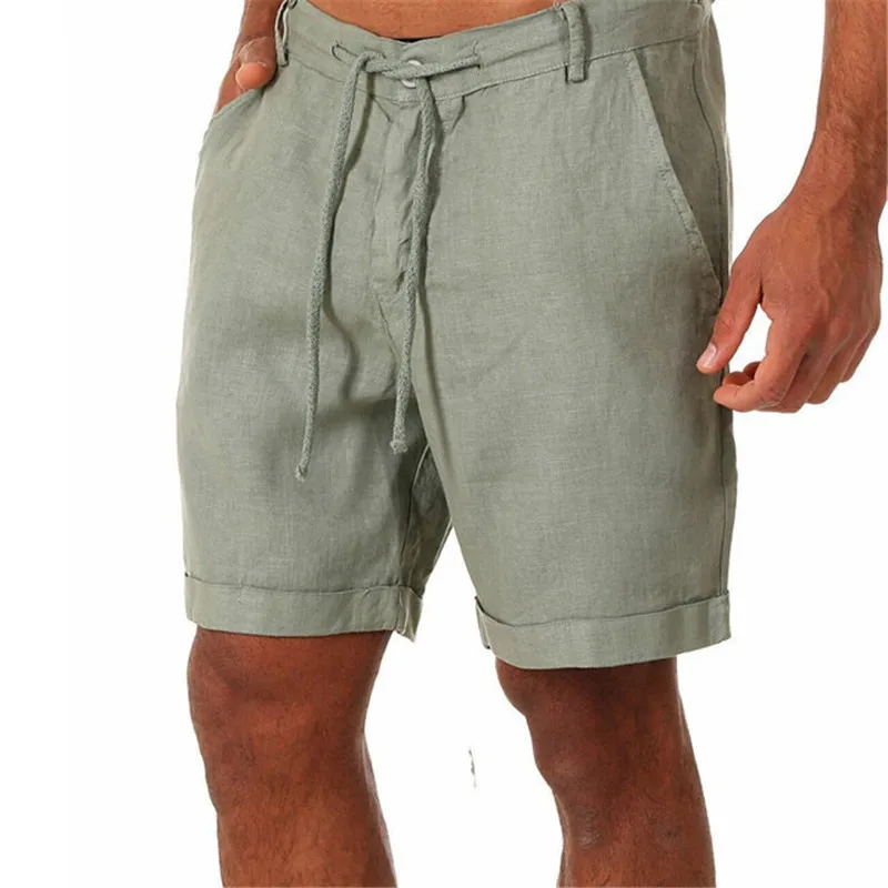 Шорты мужские повседневные из льна, модные однотонные пляжные дышащ...
