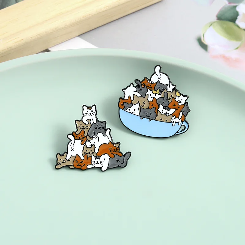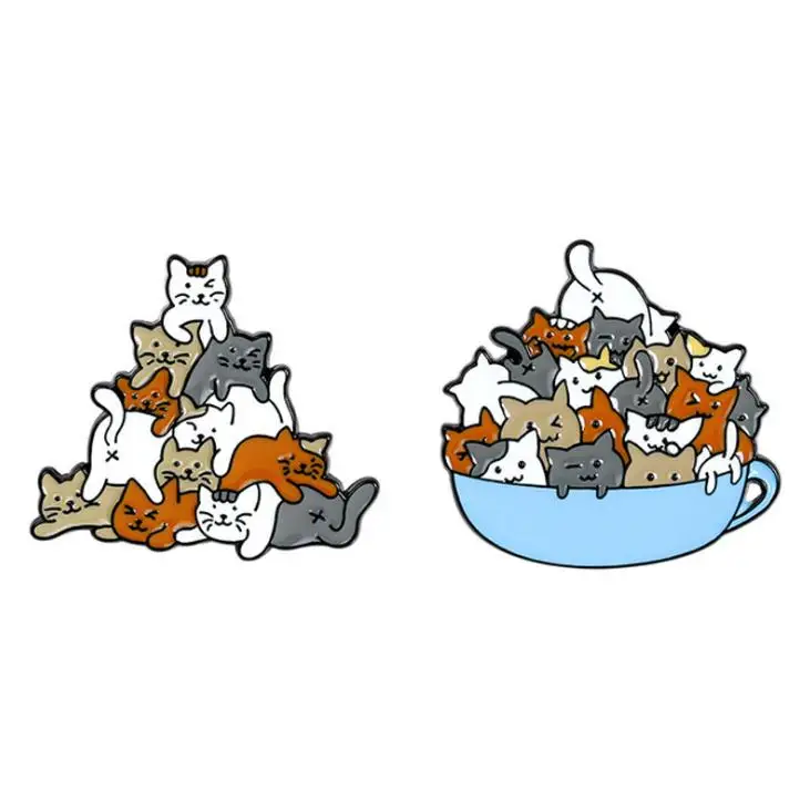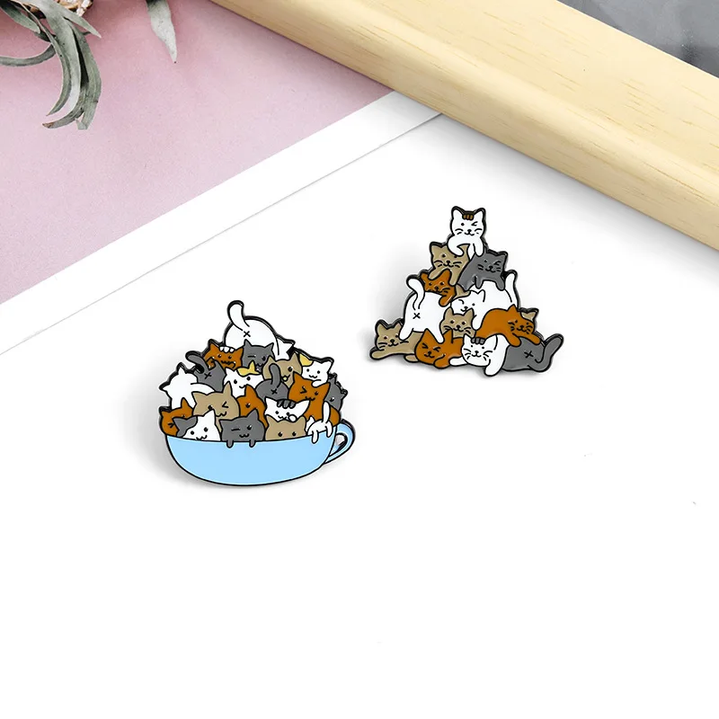 Милые эмалированные заколки в виде чашки кошек, мини-броши в виде ж...