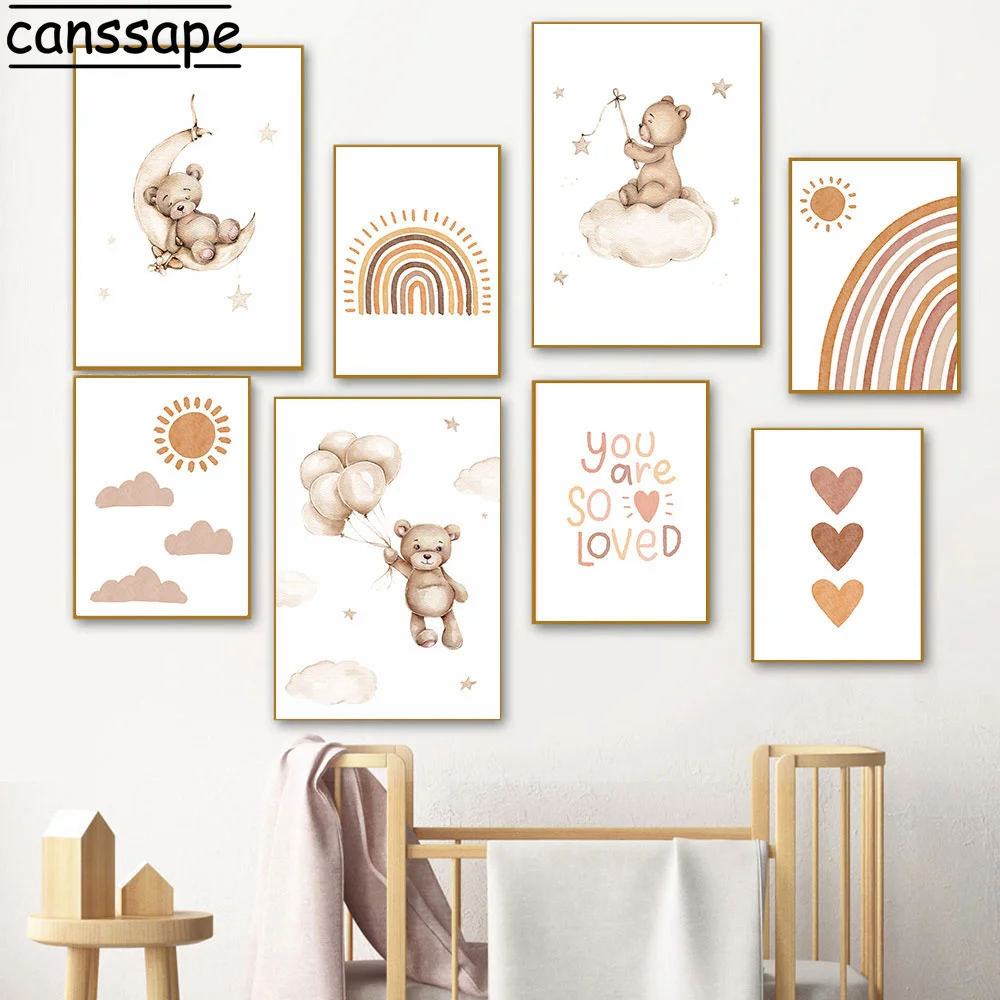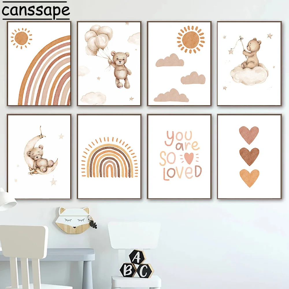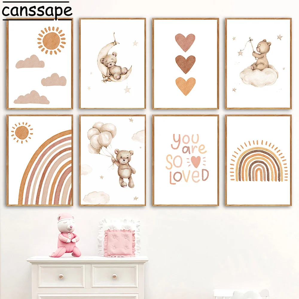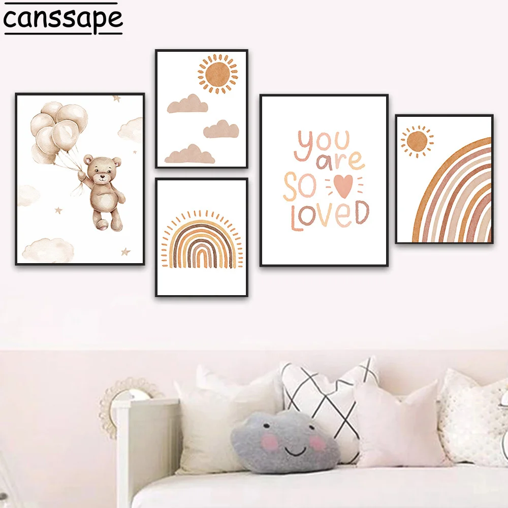 Плакаты для детской комнаты, Картина на холсте в стиле бохо, радуга, солнце, искусство, живопись, скандинавские настенные картины, декор для стен