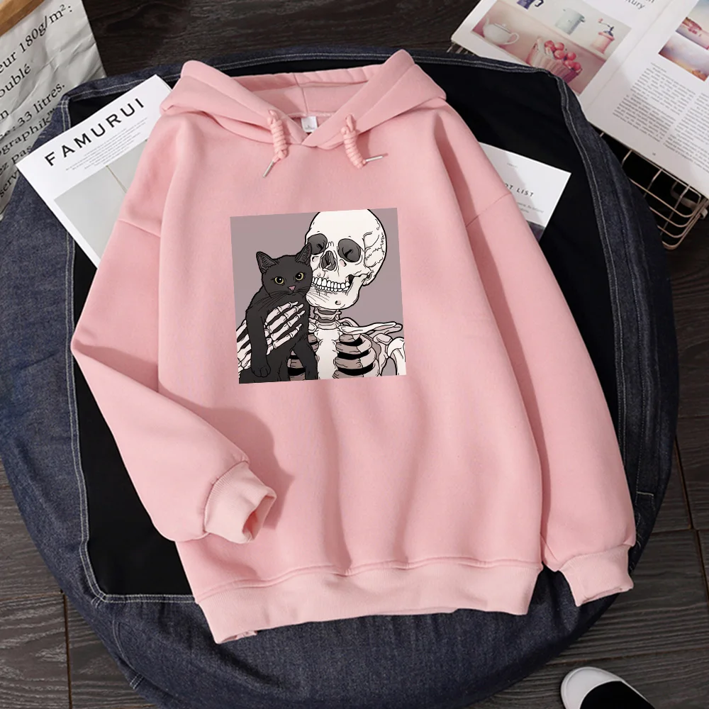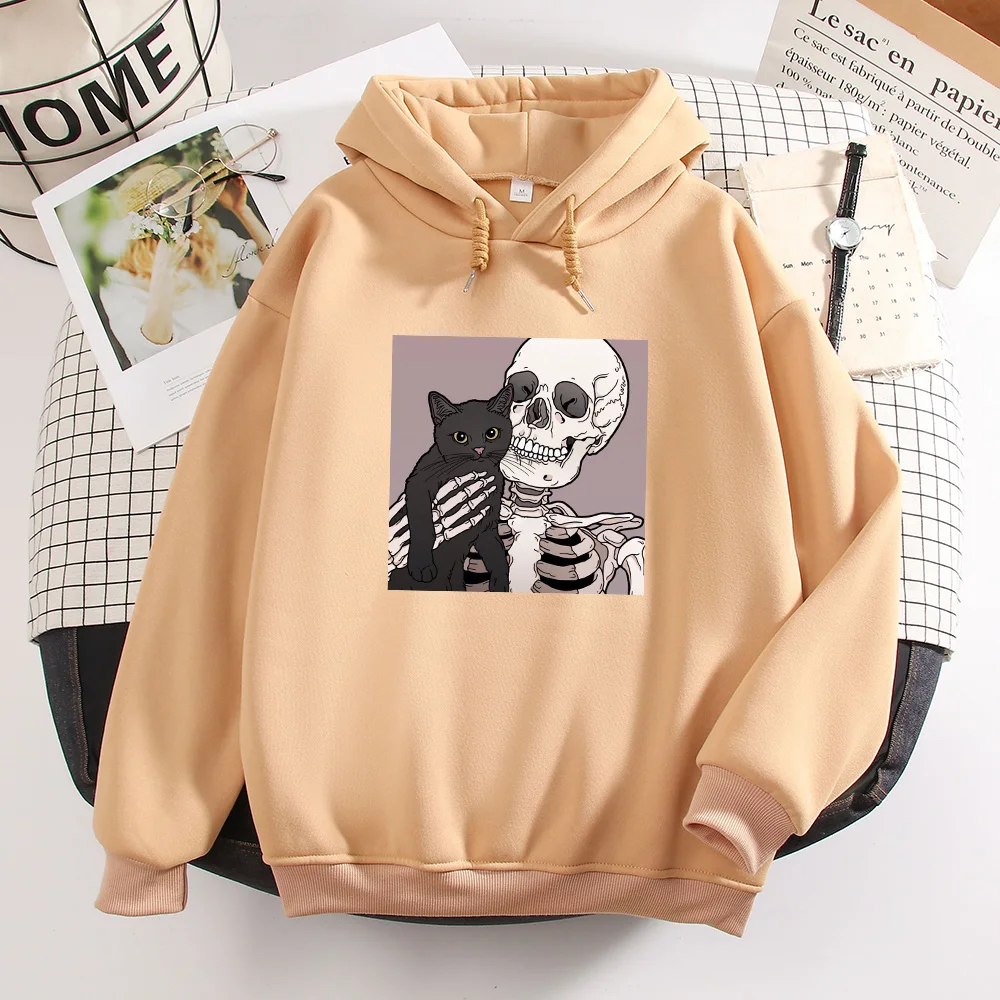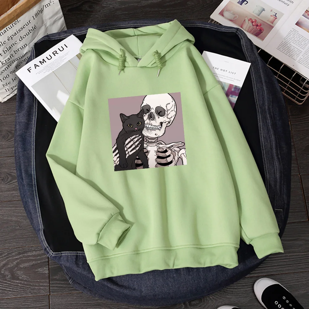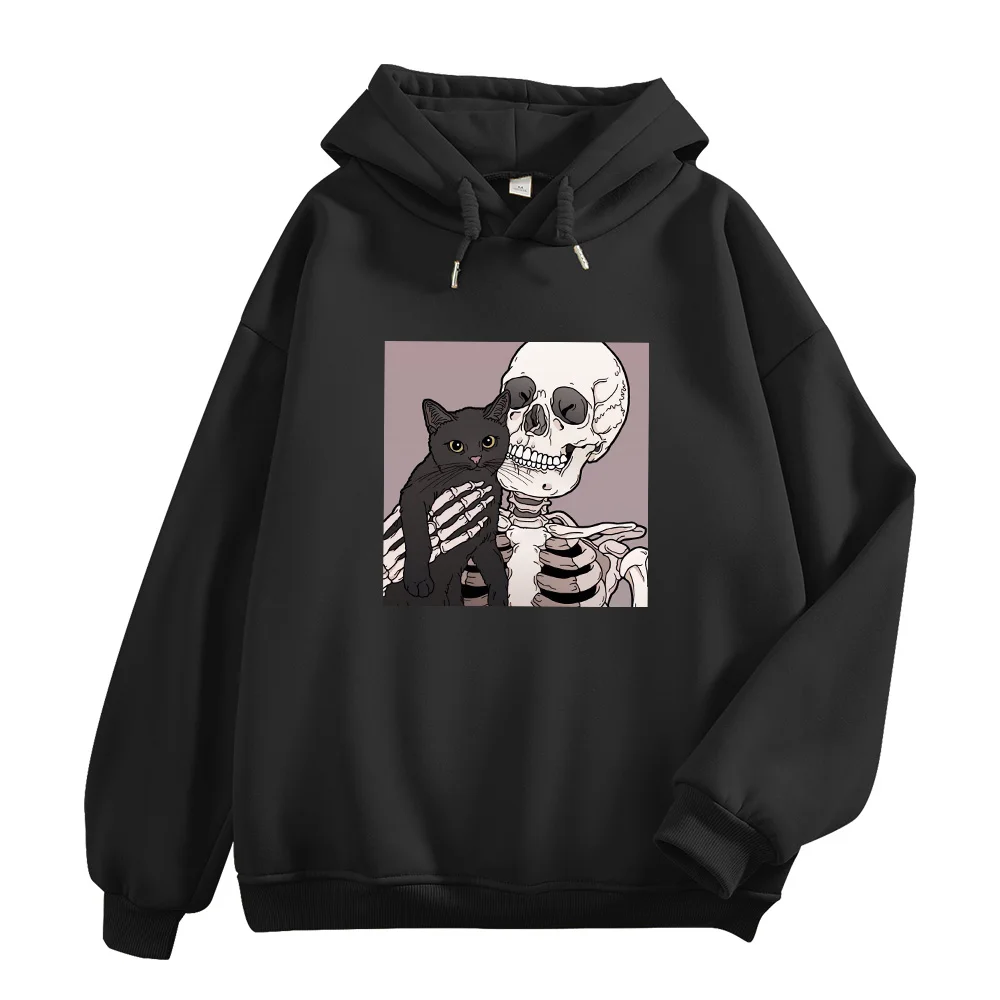 Толстовка со скелетом, свободная, черная, в стиле Харадзюку