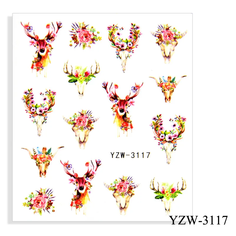 4 листа наклейки для ногтей переводная наклейка олень волк животный дизайн ногтей тату слайдер украшение для маникюра