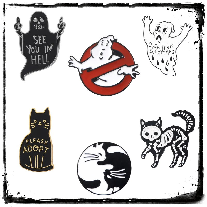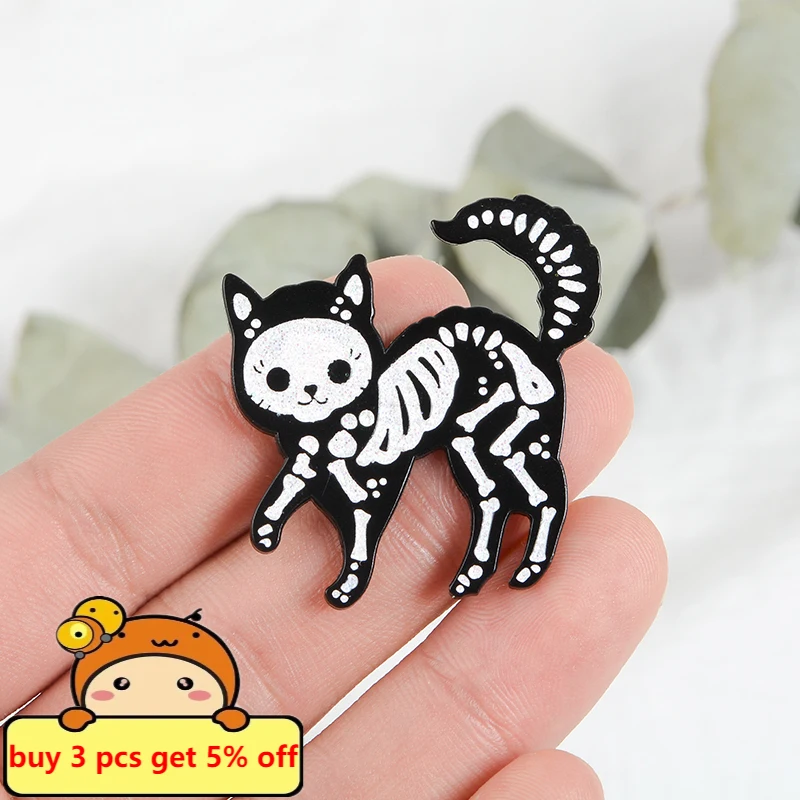 Эмалированная заколка Инь Янь кошка Скелет кошка Overthink призрак ...