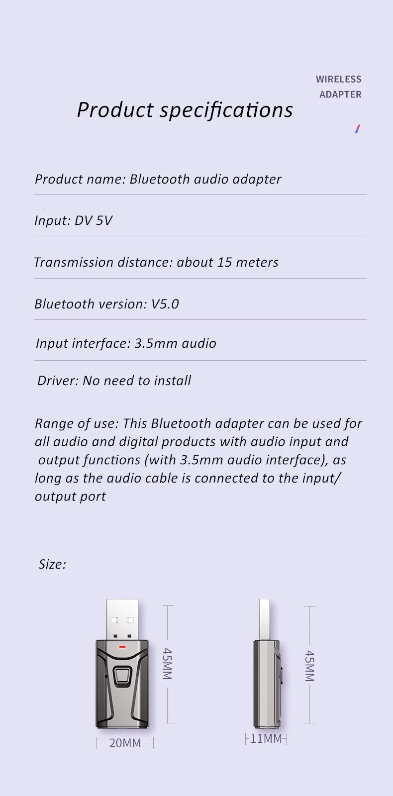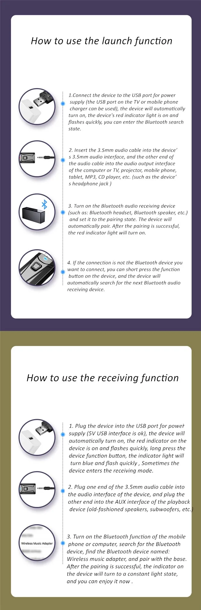 Наушники Bluetooth-2 шт.Адаптер Bluetooth-1 шт.Зарядное устройство для наушников-1 шт.1x3,5 мм аудио кабель1 x зарядный кабель.1 руководство пользователя на китайском и английском языках.