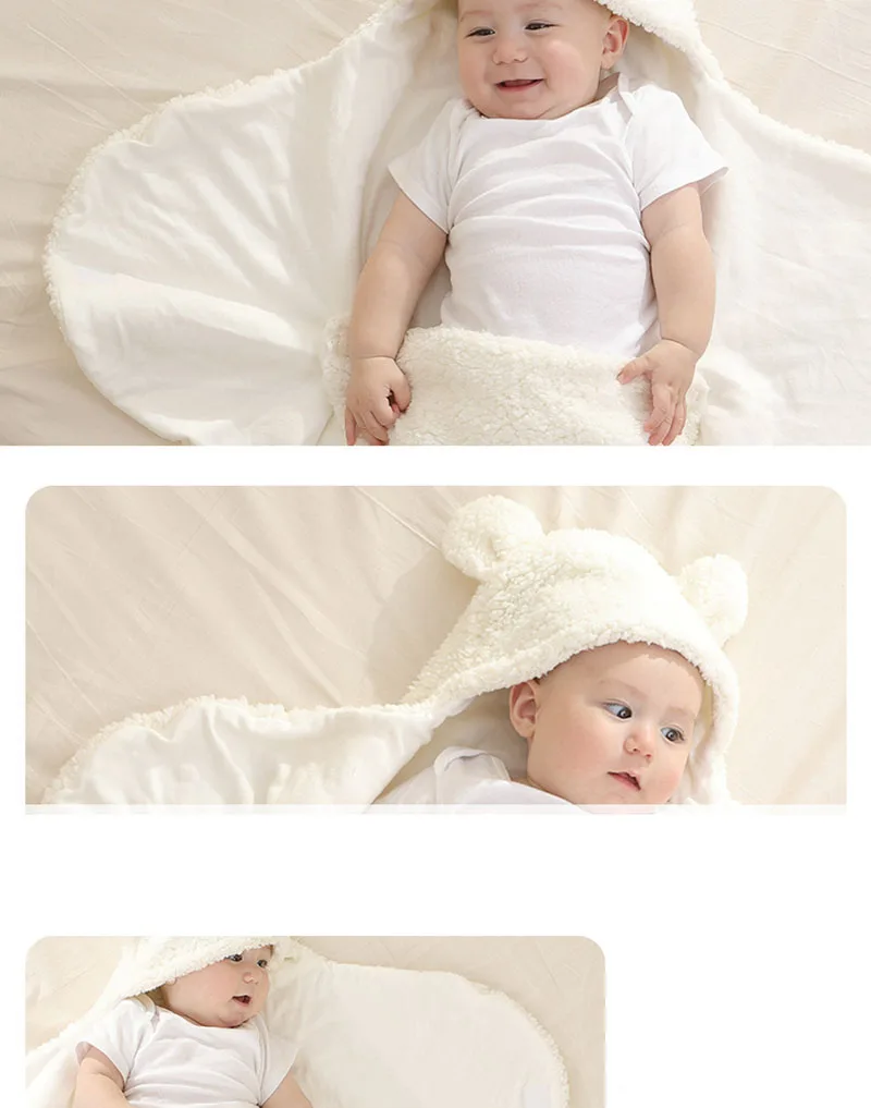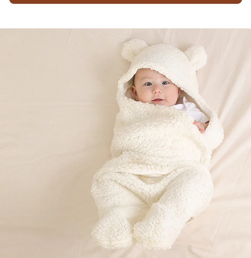 Зимнее теплое флисовое Пеленальное Одеяло с капюшоном для новорожде...