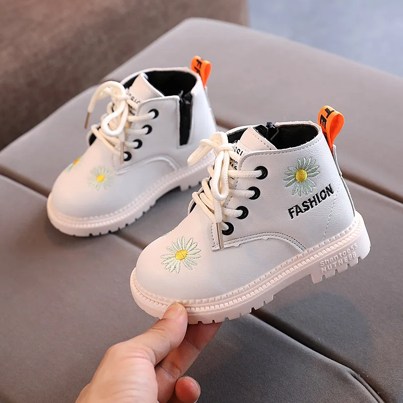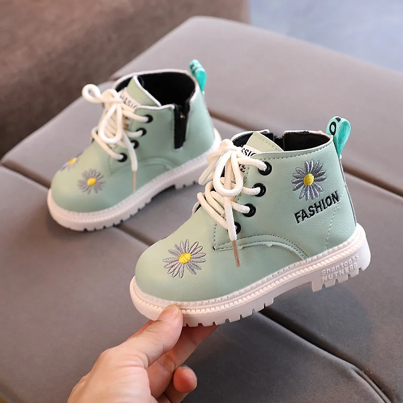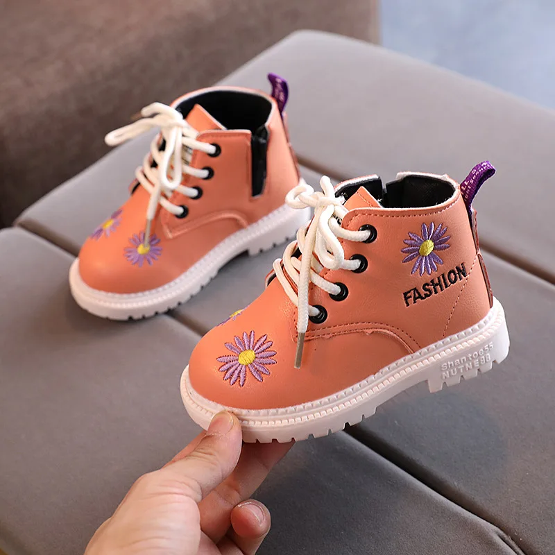 Ботинки для девочек, кожаные, водонепроницаемые, с противоскользящей подошвой