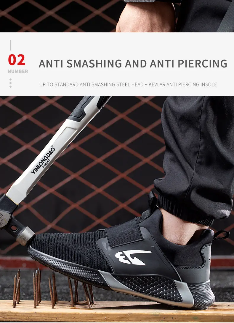 Кроссовки мужские со стальным носком, непробиваемые легкие дышащие ...