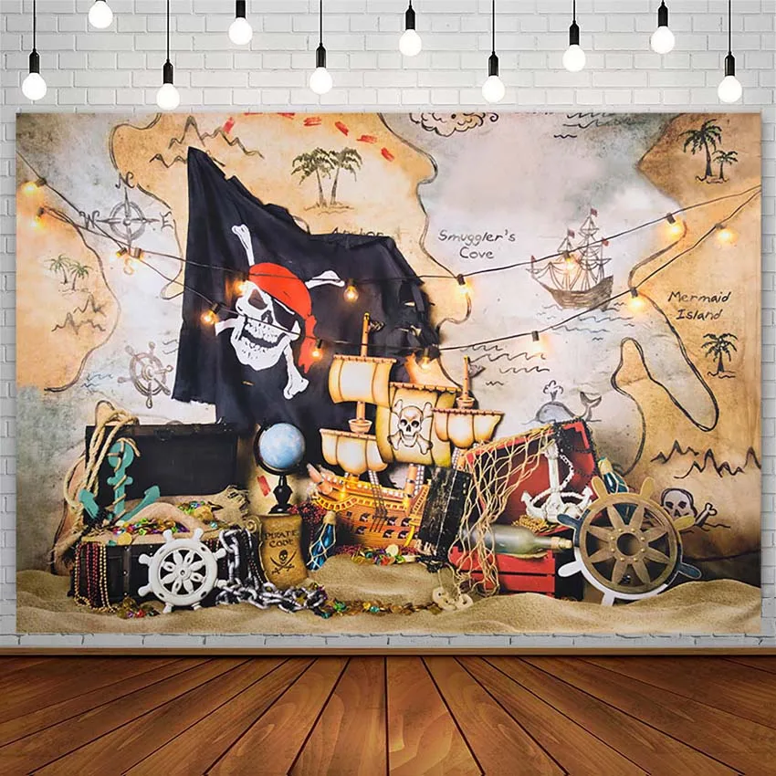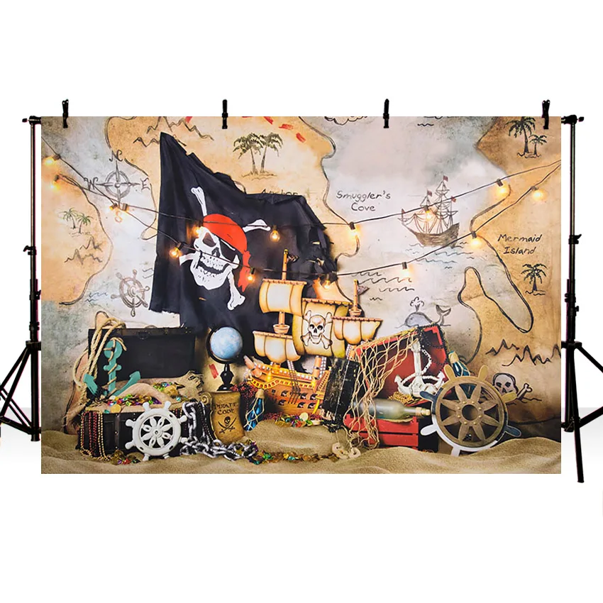 Фон для фотографирования мальчиков с изображением пиратского корабля, дня рождения, карты мира, приключений с сокровищами, детские фоны для фотографий, реквизит для фотостудии, фотозона