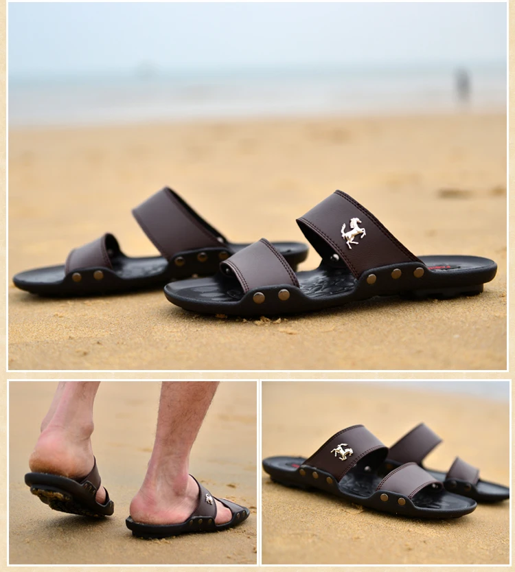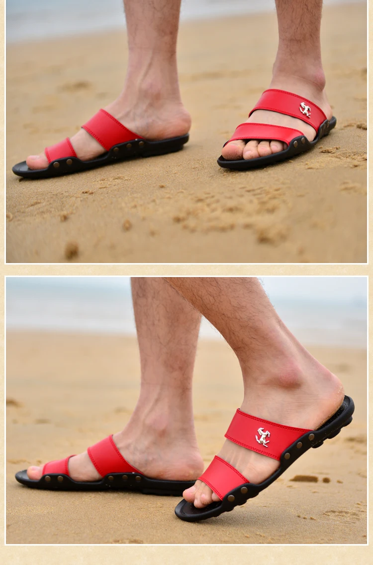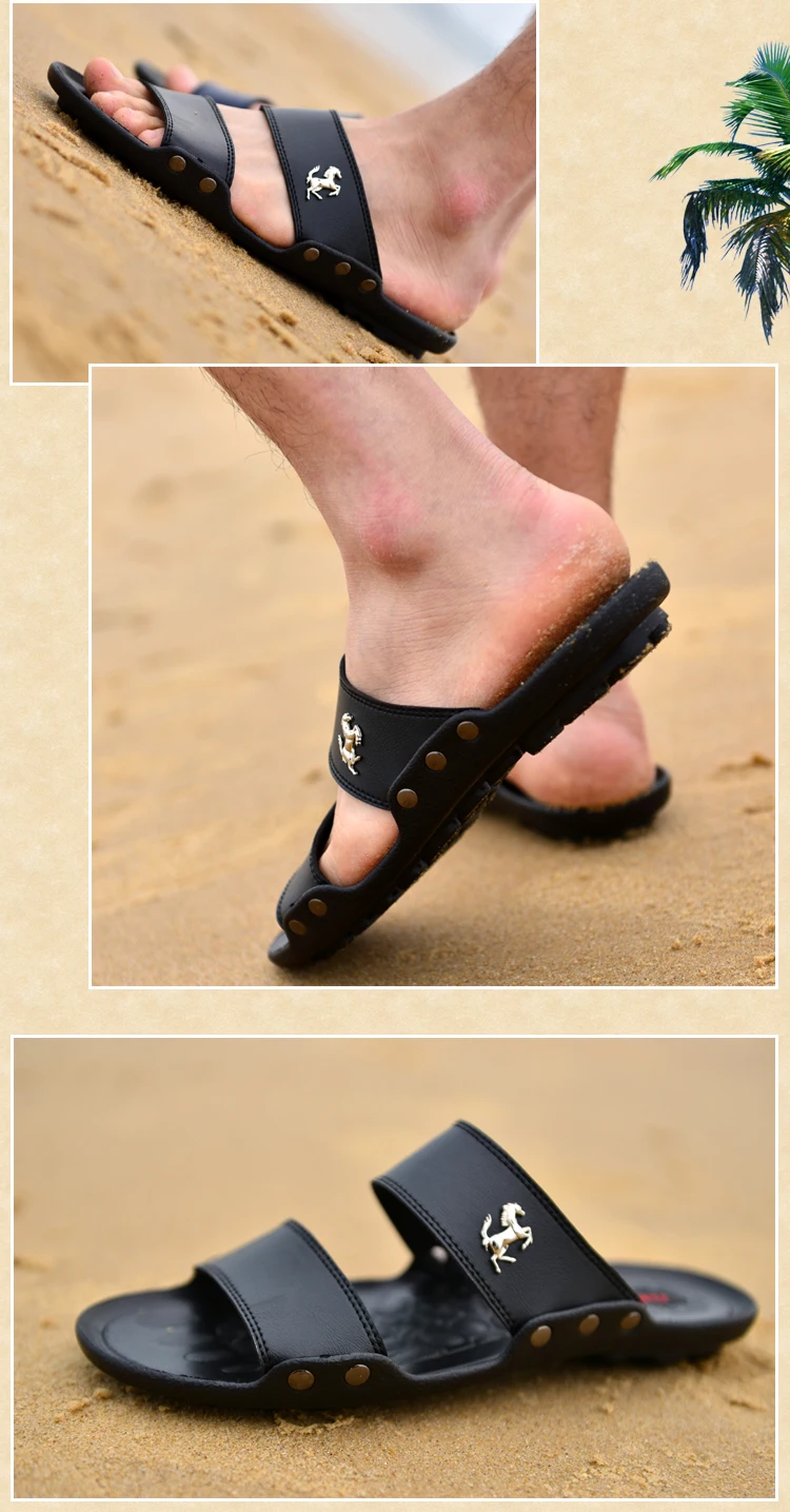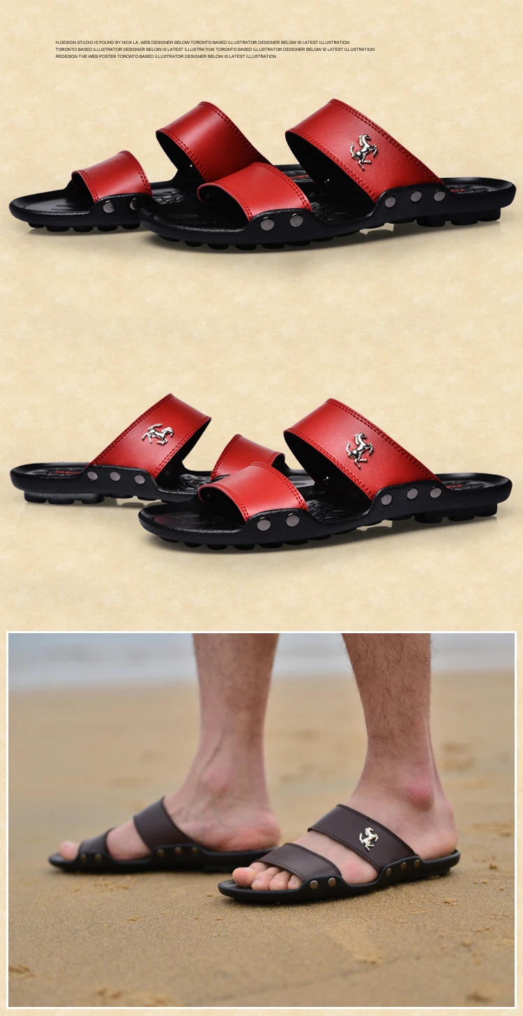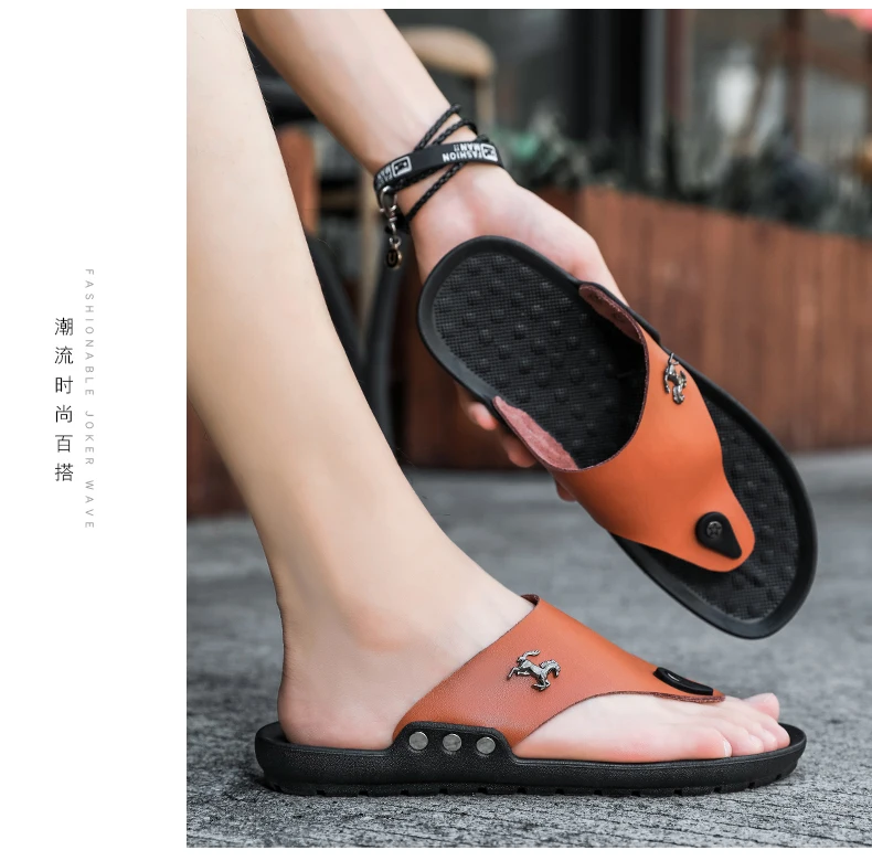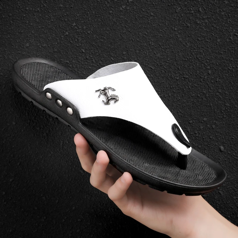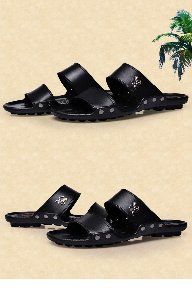 Модные мужские шлепанцы, летние мужские кожаные шлепанцы, повседнев...