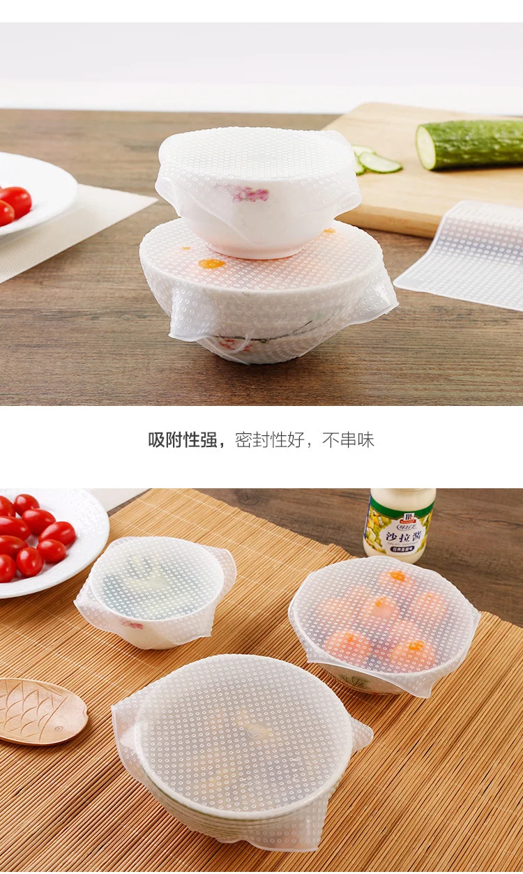 4 шт.компл. многоразовые силиконовые Эластичные крышки, чаша, крышк...
