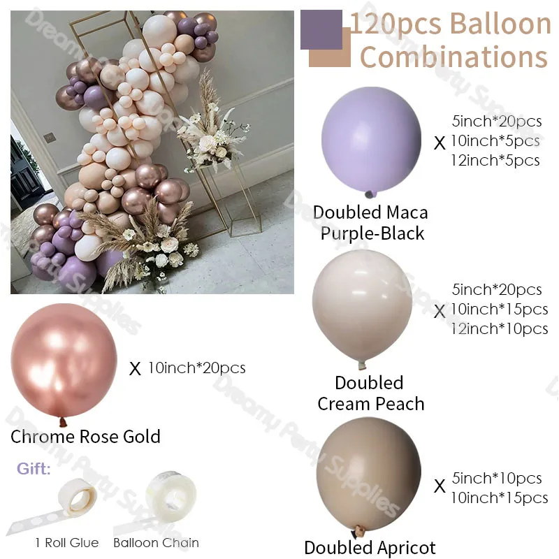 120 шт., пурпурные Двойные шары для детского душа, арочный комплект кремовые персиковые телесные розовые золотые шары, украшения для дня рождения, свадьбы, вечеринки