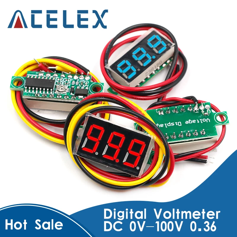 Цифровой вольтметр, 0,36 дюйма, 0,36 дюйма, красный, зеленый, синий, постоянный ток, 0-100 в, три линии, 3-значный измеритель напряжения, дисплей, светодиодный цвет