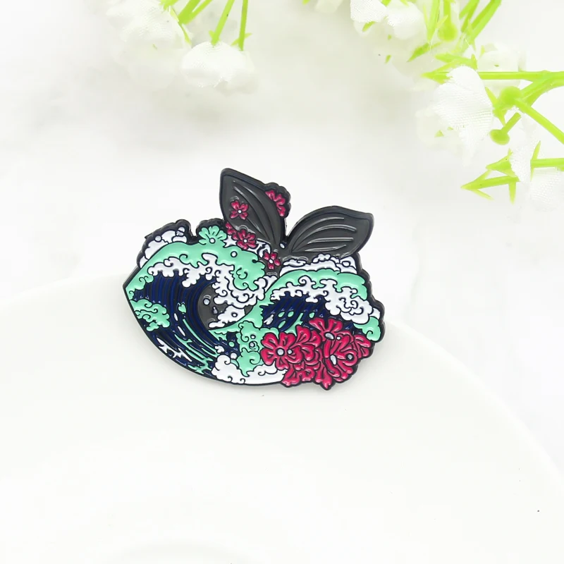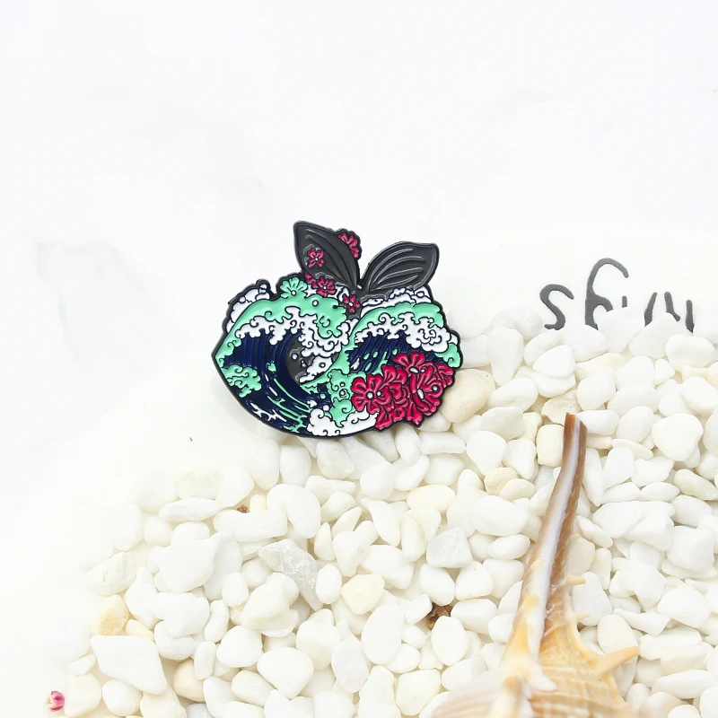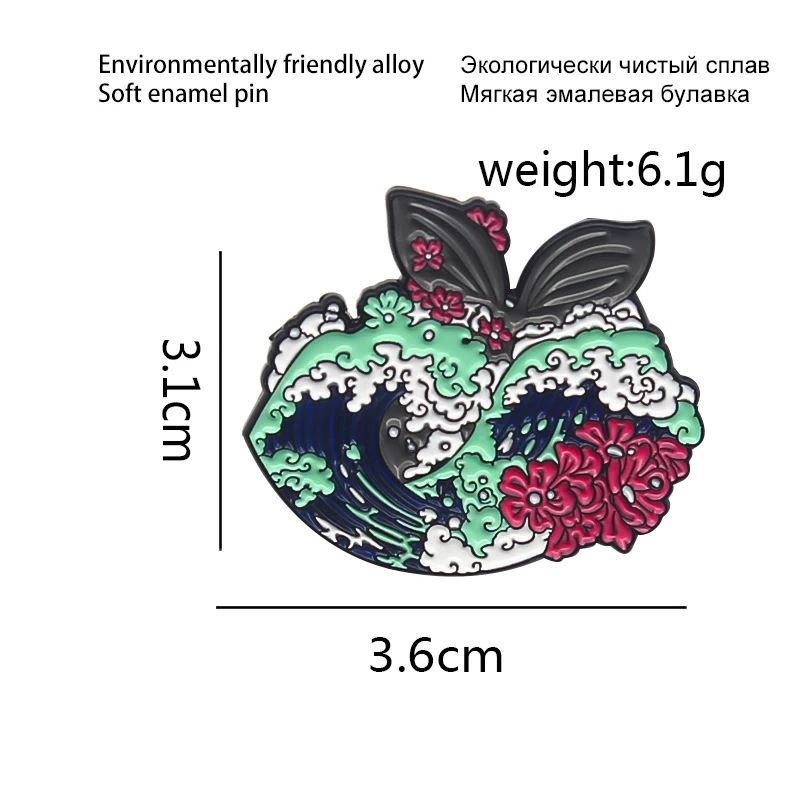 Креативная брошь в форме яблока, эмалированная брошь в форме морской волны, спрея, Кита, рыбьего хвоста, цветка, булавка для лацкана, рюкзака, куртки, модный значок