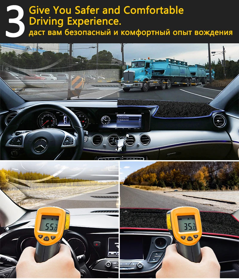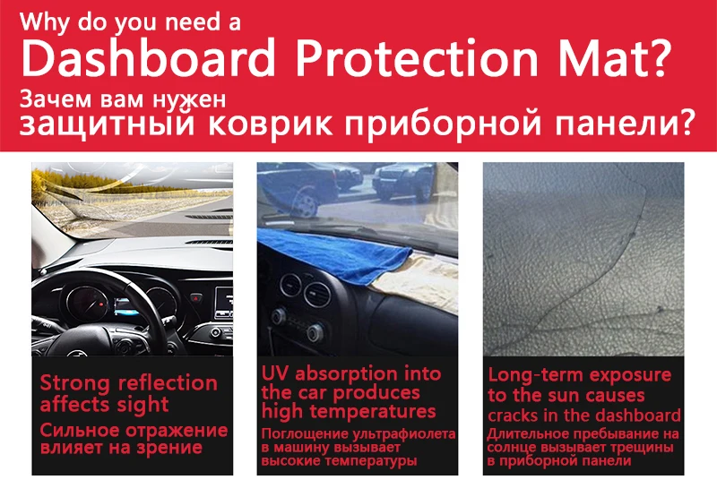 Особенности:1. Сохраняет Внутренний охладитель вашего автомобиля летом и теплее зимой.2. Уменьшает опасный ультрафиолетовый светильник.3. Защищает приборную панель от солнечных лучей.4. Не садится, не выцветает или не искажает.Цвета: черный, красный, синий