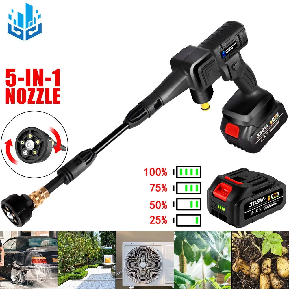 18-21V 5-в-1 водоподачи в Пистолеты 300W Аккумуляторная электрическая машинка пистолет для очистки воды Li-Ion Батарея Дисплей высокое Давление распылитель моечная машина