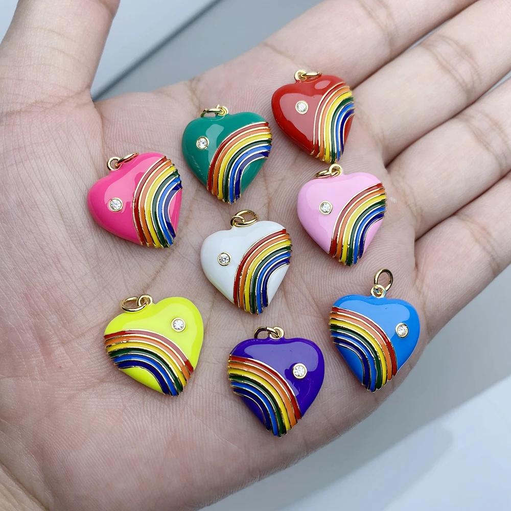Подвеска в виде разноцветного сердца, в богемном стиле, для изготовления ювелирных изделий брелоки для браслетов и ожерелий, медь для женщин и мужчин