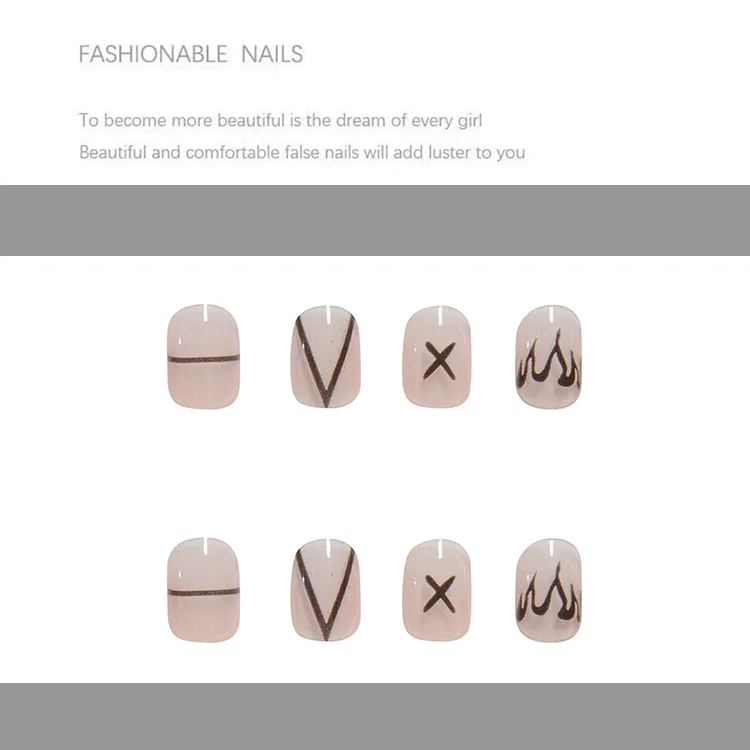 24 шт., съемные Пластыри для ногтей с принтом черных линий