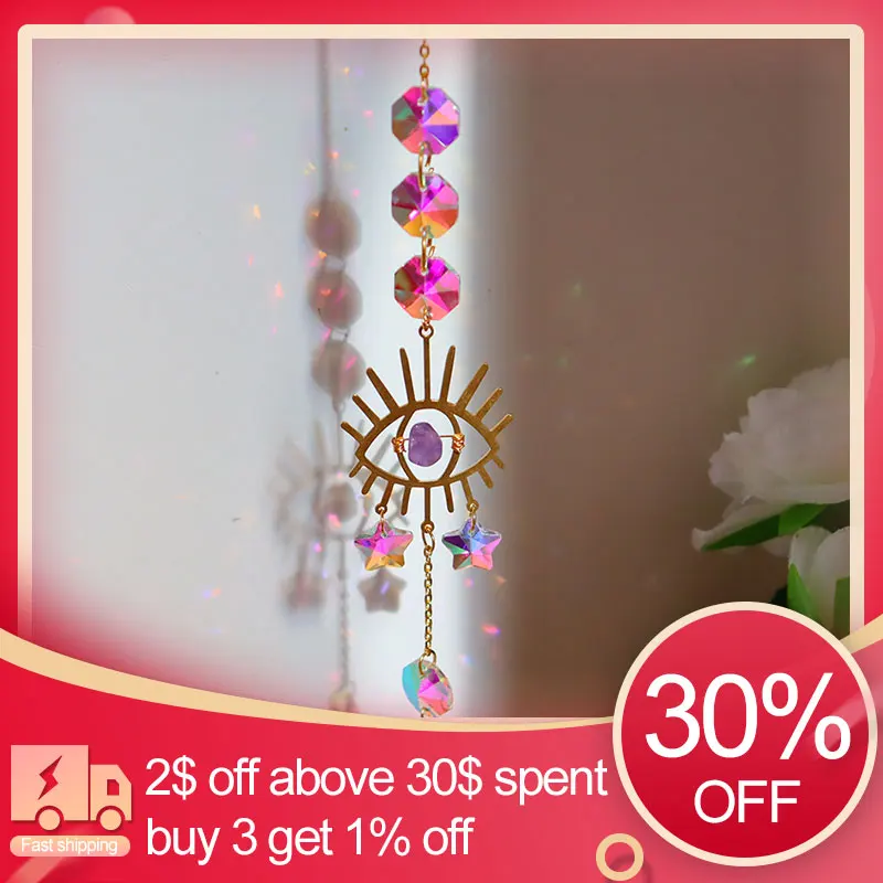 Подвесная хрустальная звезда шестигранная глазная призма для окон, подвеска-колокольчик от солнца, радужный ловец снов, колокольчик ветра