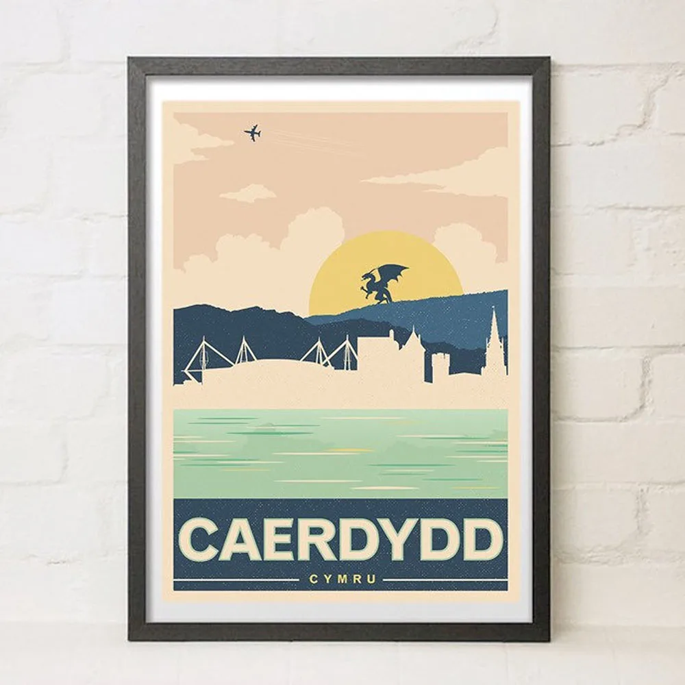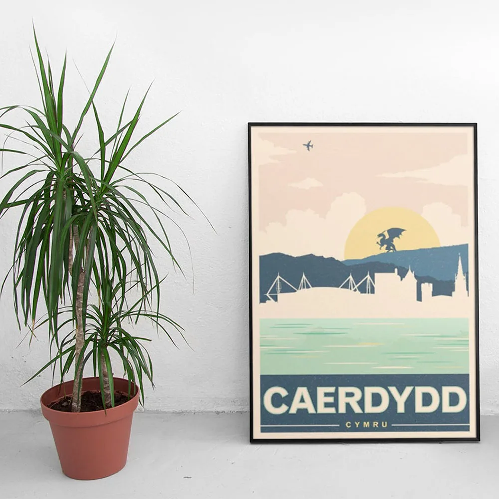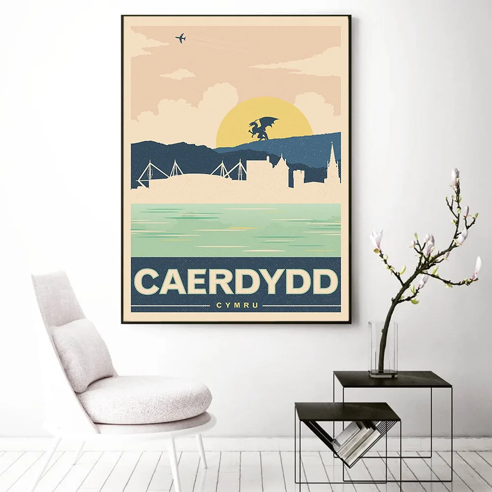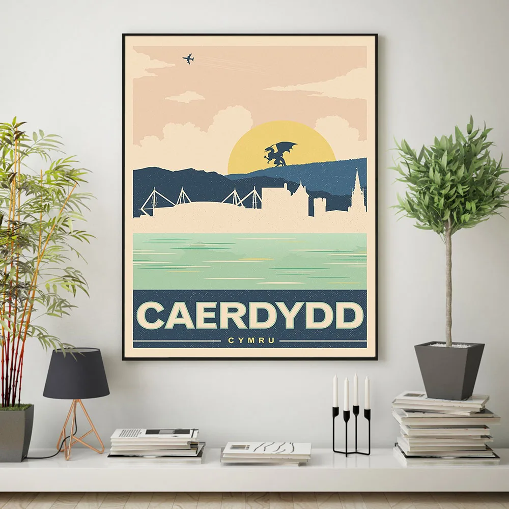 Плакат Caerdydd, Кардифф, Уэльс, в скандинавском стиле, в стиле ретро