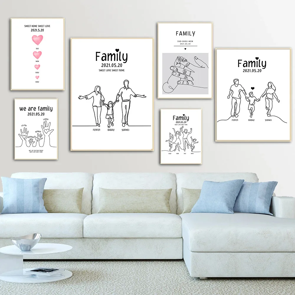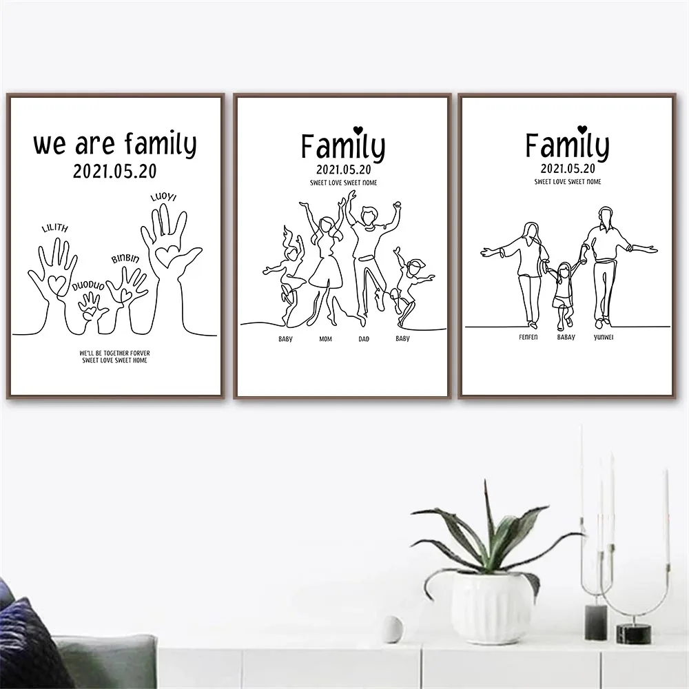 Семейный портрет, принт, Папа, мама, ребенок, линия, настенный худо...
