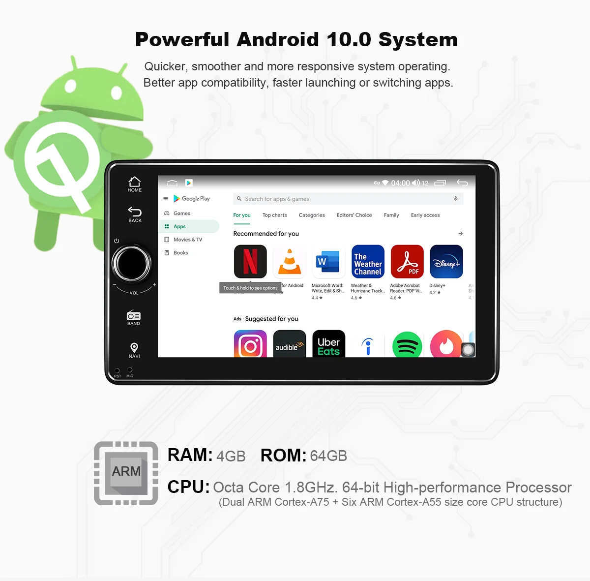 Универсальная магнитола Joying, мультимедийный плеер на Android, с 7 "экраном, Bluetooth, Типоразмер 1DIN