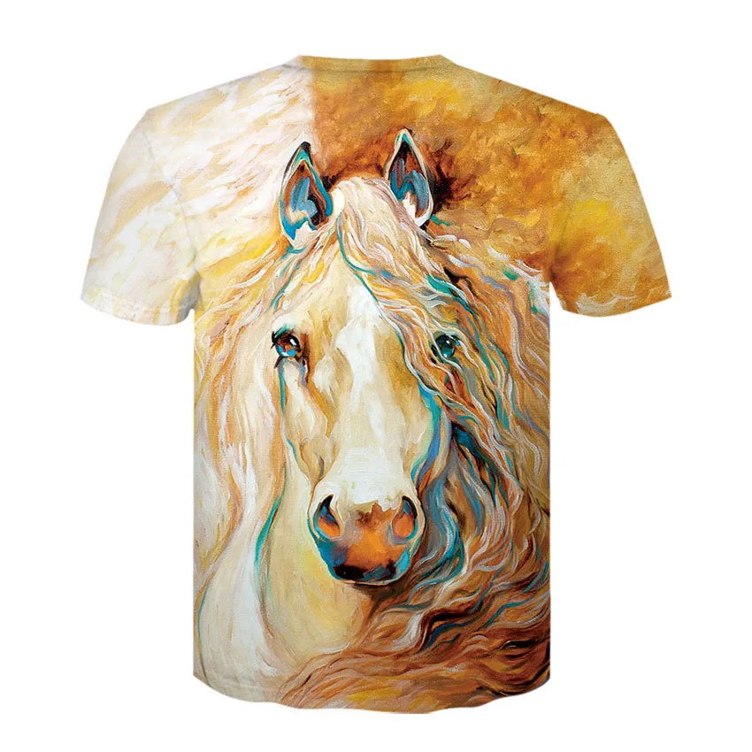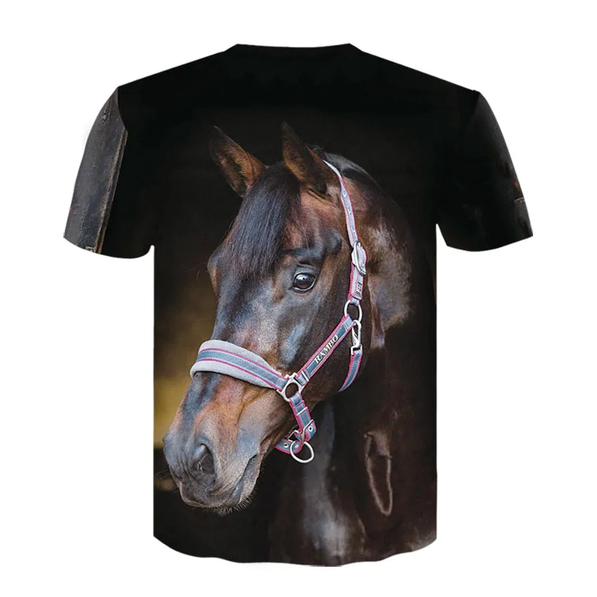 Новая летняя футболка с 3D-принтом черной лошади, модная повседневная футболка в стиле Харадзюку с круглым вырезом и коротким рукавом