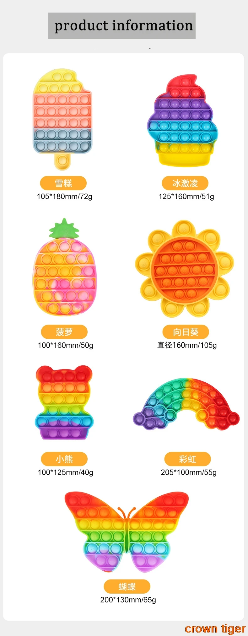 rainbow push pops bubble toyunicorn spaceman dinosaur tree bear butterfly flower