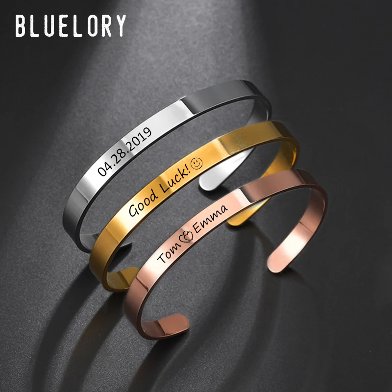 Браслет-манжета Bluelory с гравировкой на заказ для женщин и мужчин, 6 мм, из нержавеющей стали