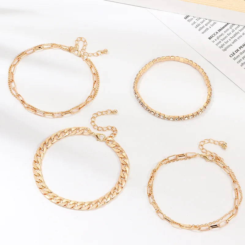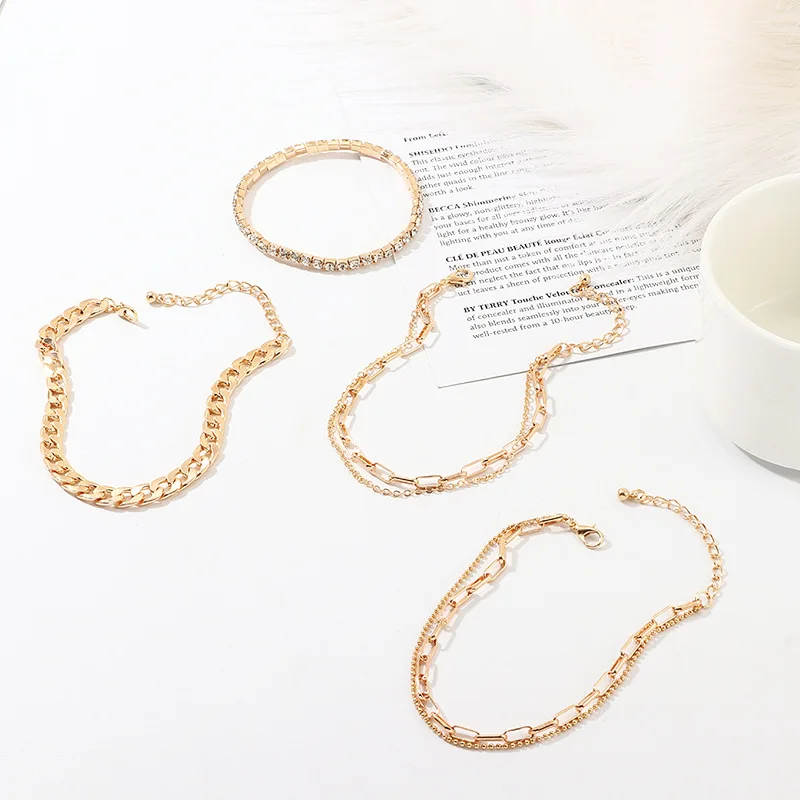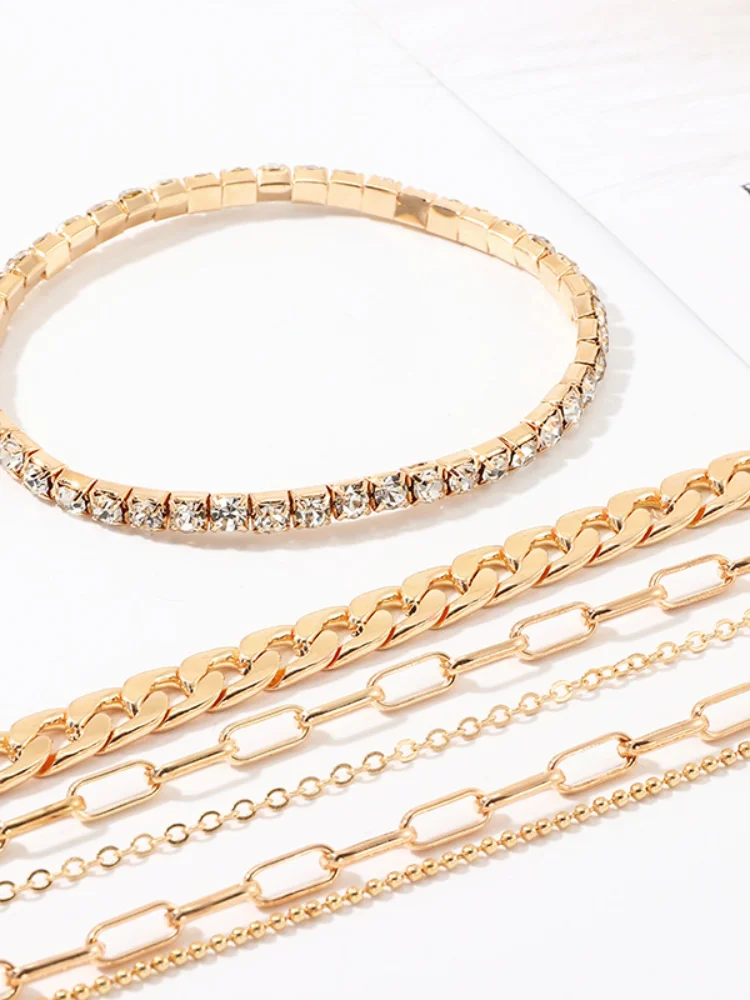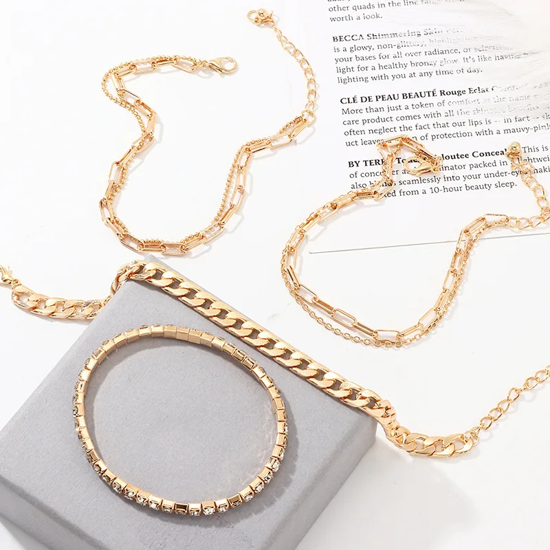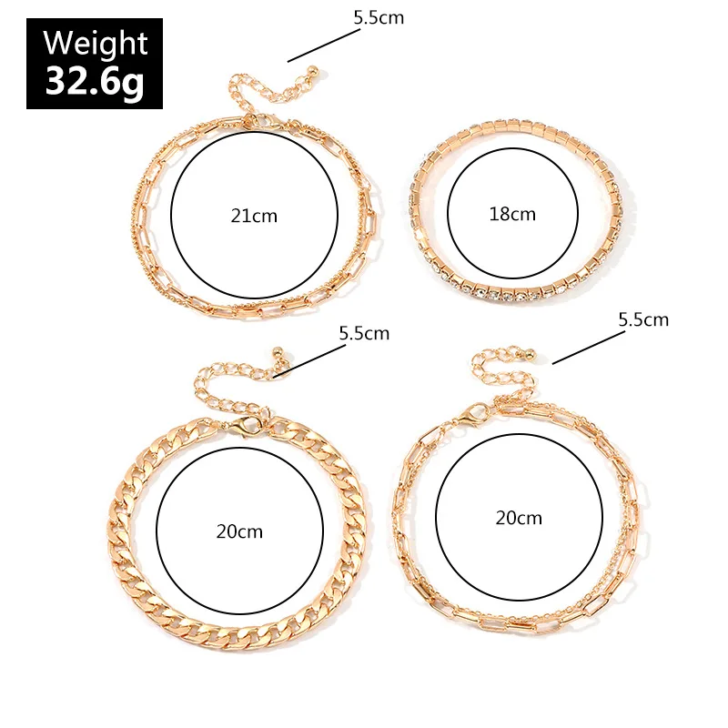 Женский ножной браслет из 6 предметов в стиле панк многослойный полноразмерный простой металлический анклет на толстой цепочке для женщин
