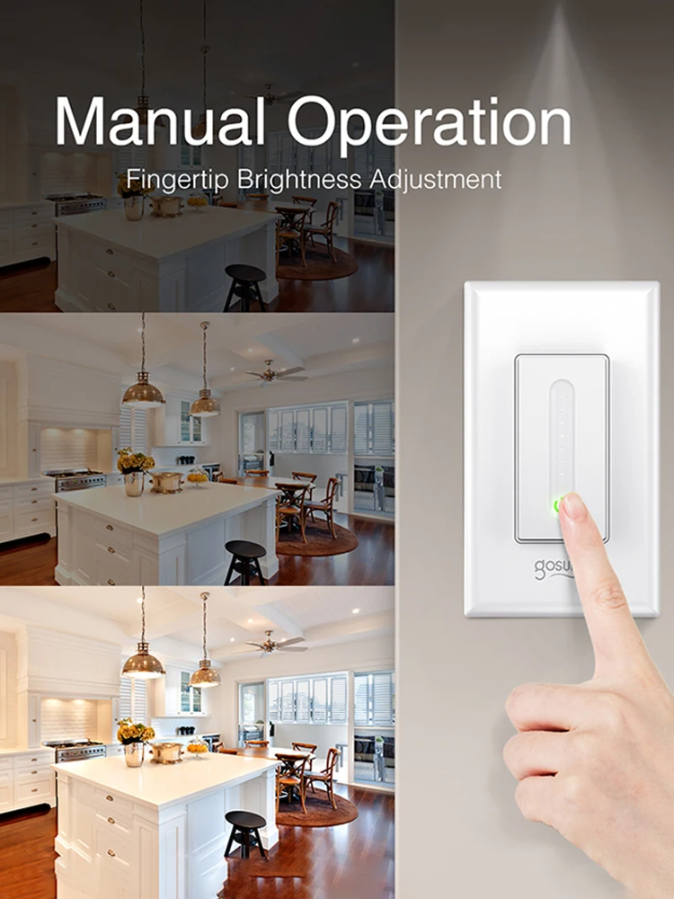 [Голосовое управление] умный переключатель Alexa dimmer работает с Alexa и Google Home, чтобы освободить руки; Включите Gosund мастерство в приложении Alexa/Google Home для сопряжения. Не требуется ни концентратор, ни подписка на светильник Wi-Fi.