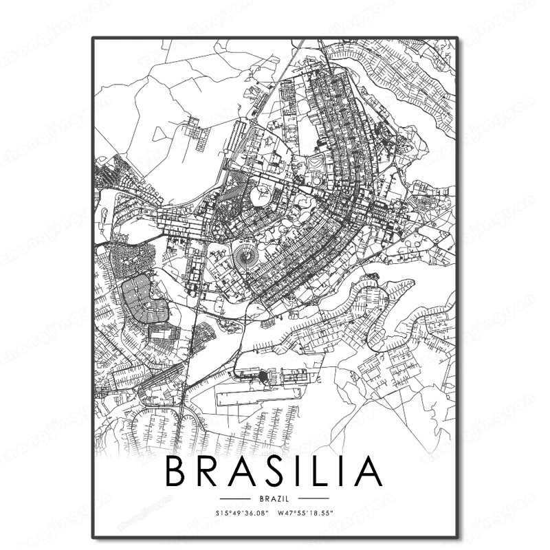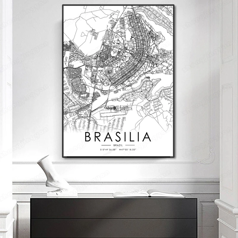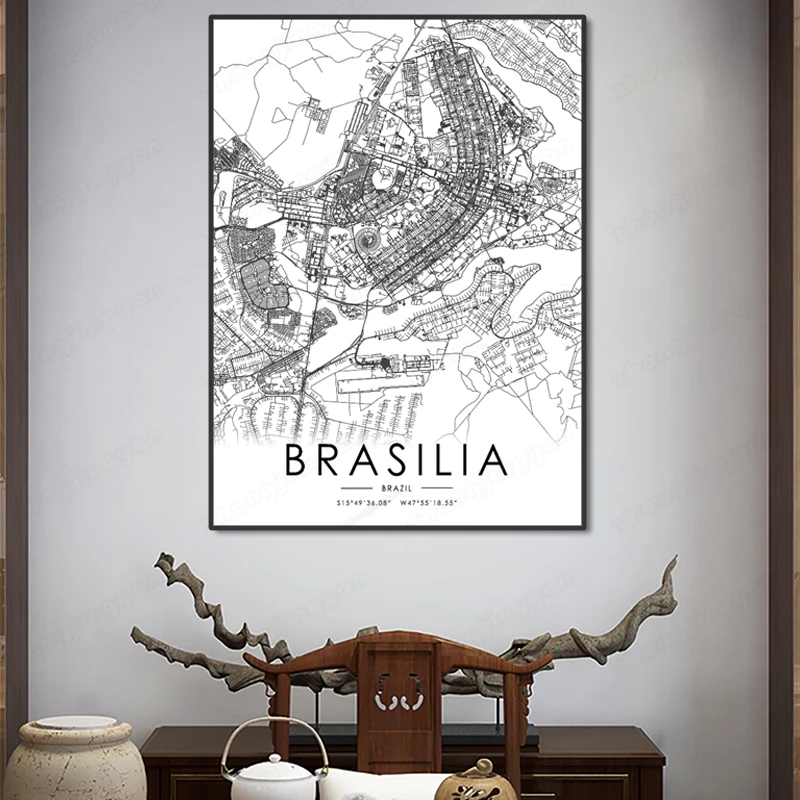 Черно-белая карта города плакат карты Бразилии HD Печать на холсте рисунок на стене Скандинавская живопись для домашнего декора