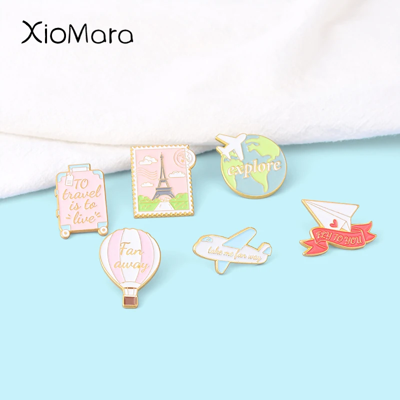 Эмалированные Значки для путешествий, открытка для самолета, чемода...