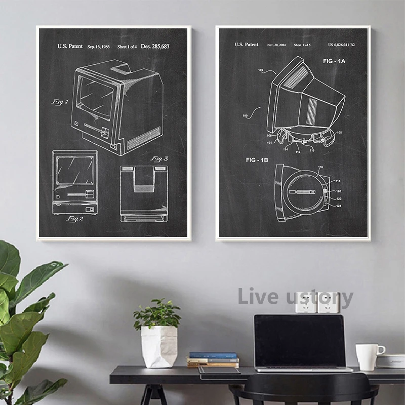 Патентованные винтажные постеры и принты для компьютера, ретро-схема, рисование, художественная живопись на холсте, офисные настенные картины, украшение, подарок