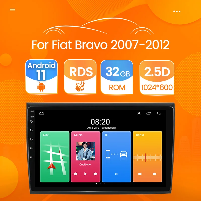 2 DIN RDS Android 11 2 + 32G Автомагнитола мультимедийный видеоплеер для Fiat Bravo 2007-2011 2012 GPS-навигация стерео блок WIFI USB