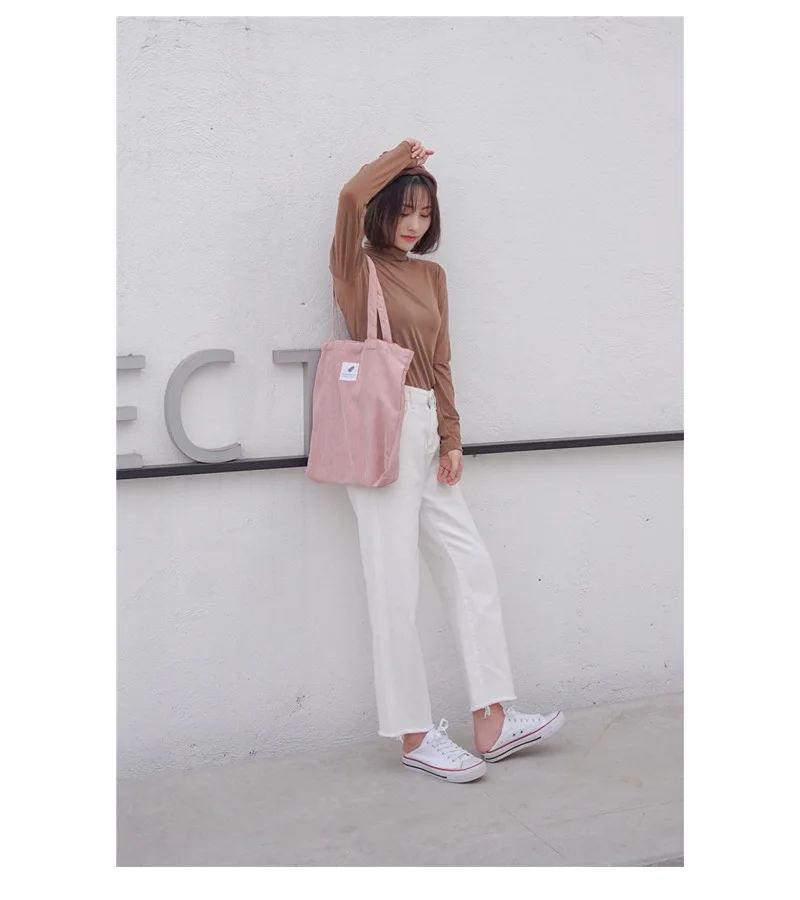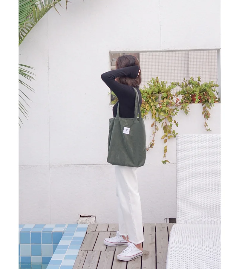Вельветовая женская сумка для покупок, тканевый экологически чистый многоразовый складной экологически чистый тоут для продуктов