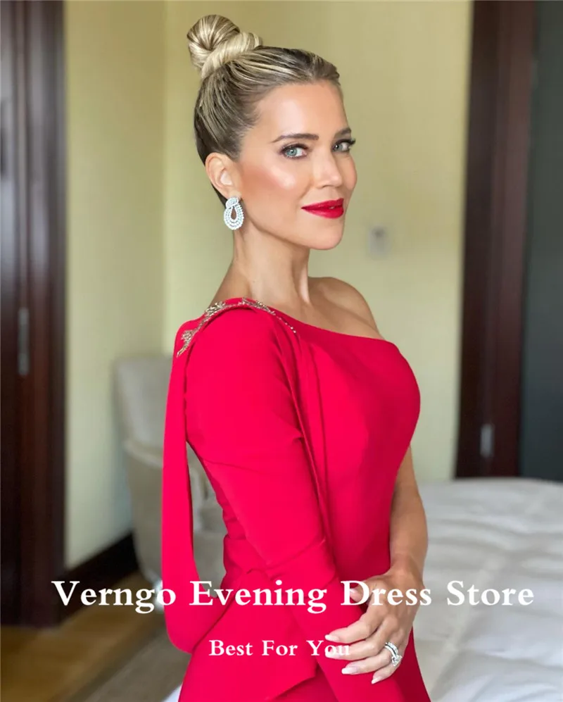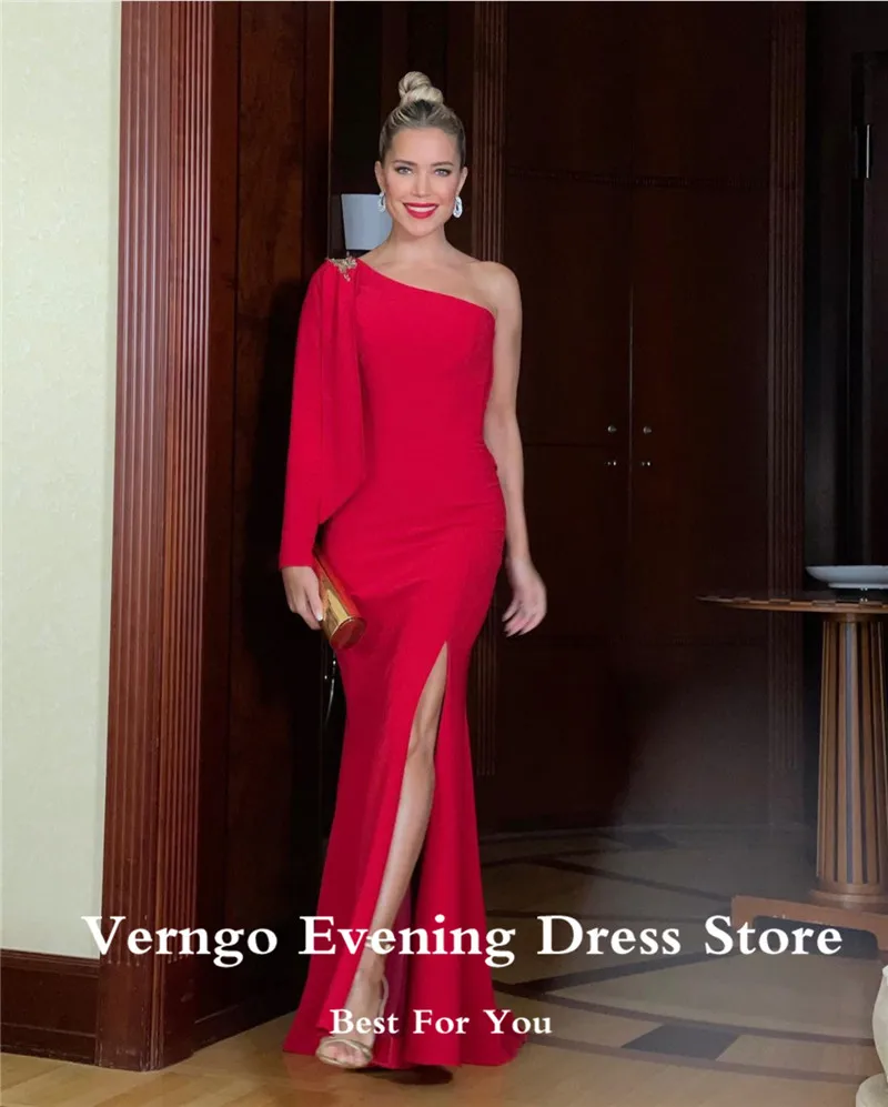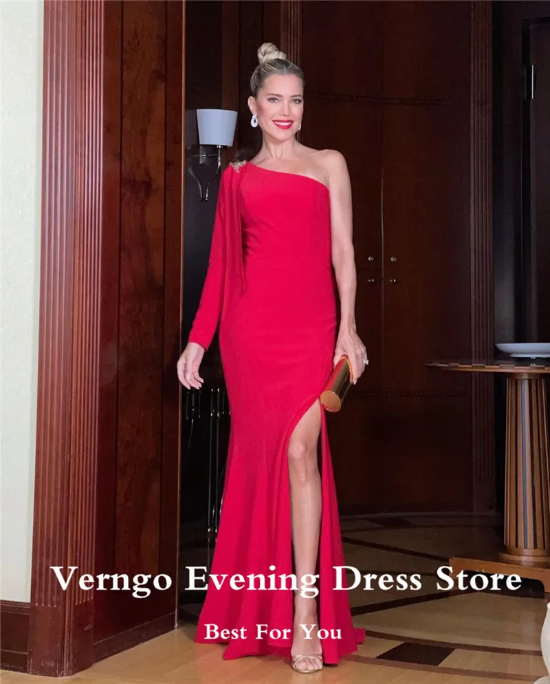 Красное вечернее платье-Русалка Verngo, эластичное атласное официальное платье с длинным рукавом, элегантное платье с разрезом для выпускного вечера, 2021, платье знаменитости