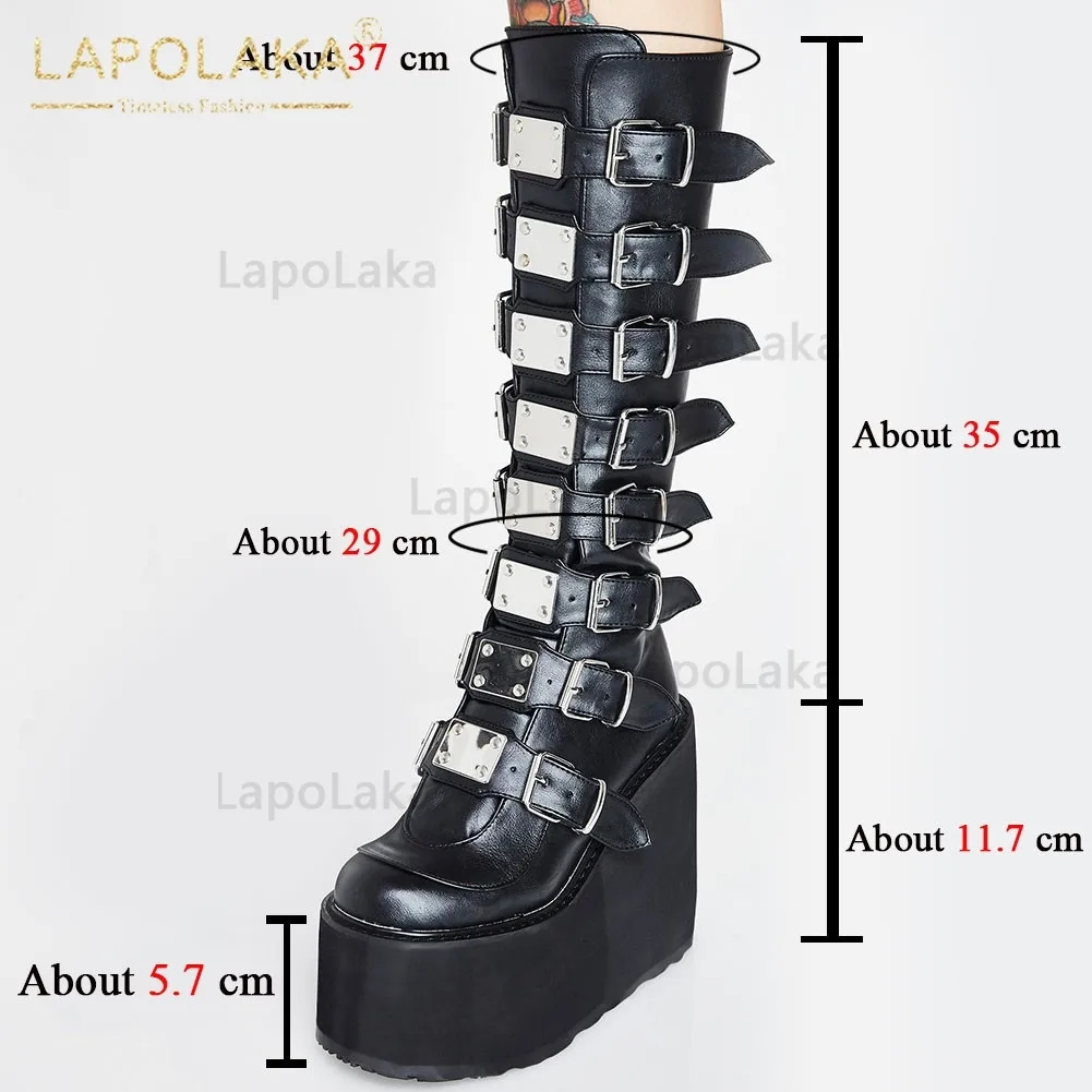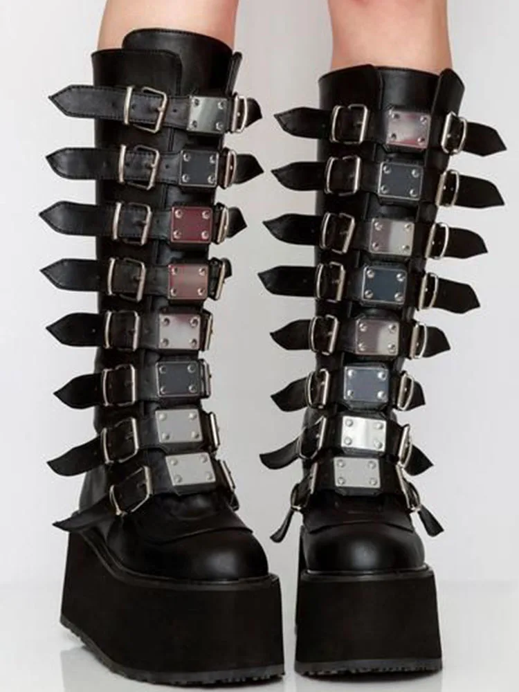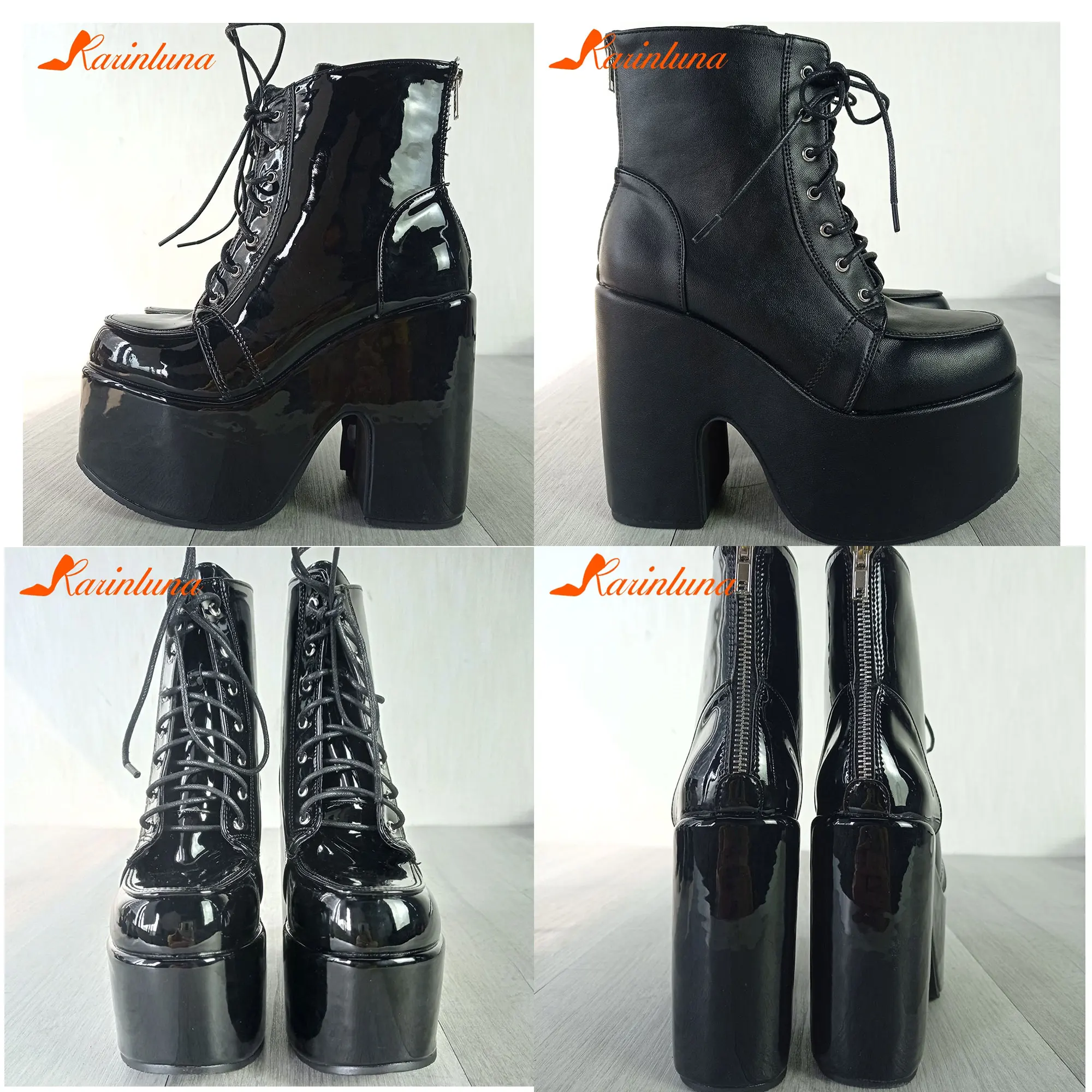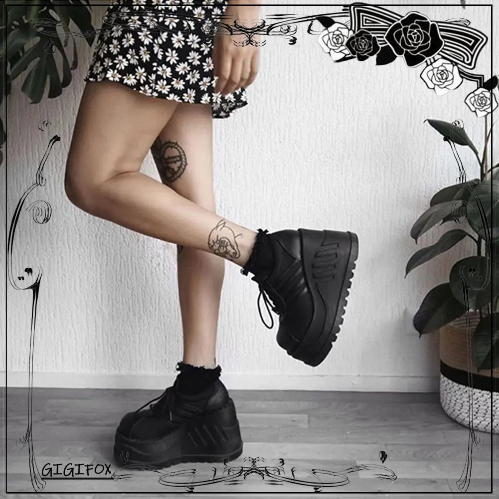 Женские ботинки в готическом стиле, черные мотоциклетные ботинки на платформе и высоком каблуке, большой размер 50