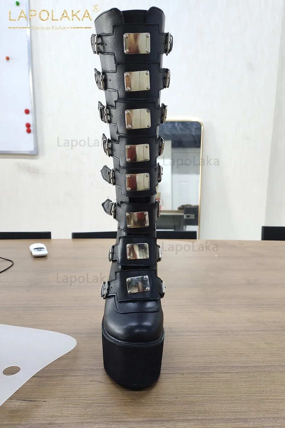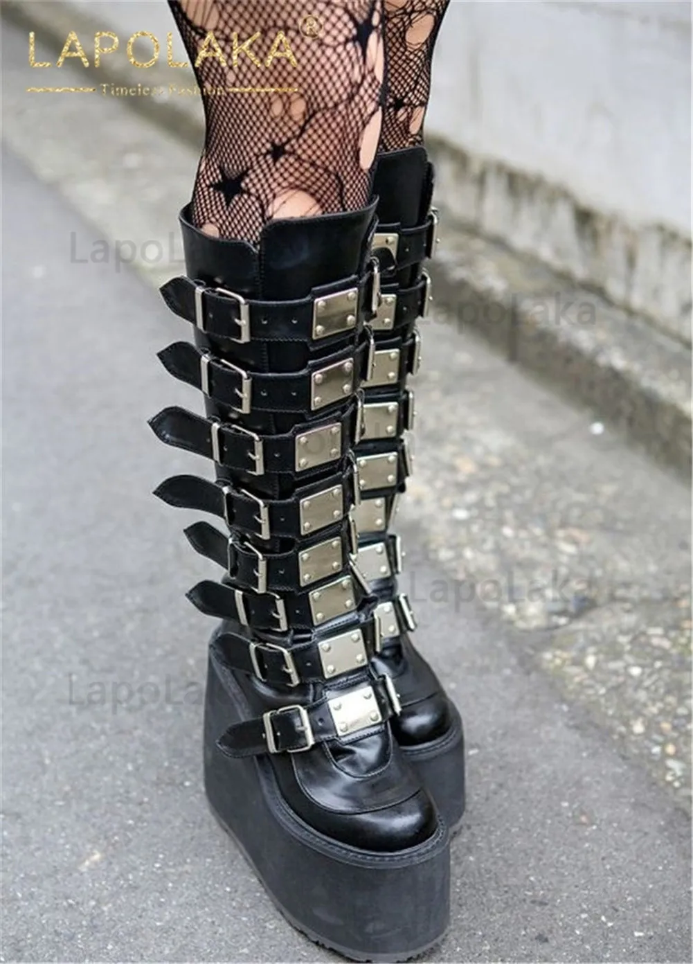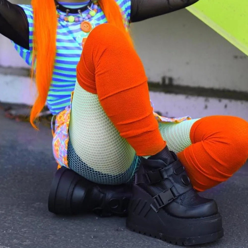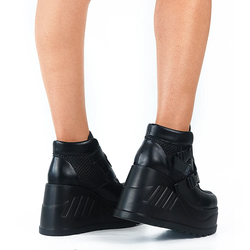 Женские ботинки в готическом стиле, черные мотоциклетные ботинки на платформе и высоком каблуке, большой размер 50