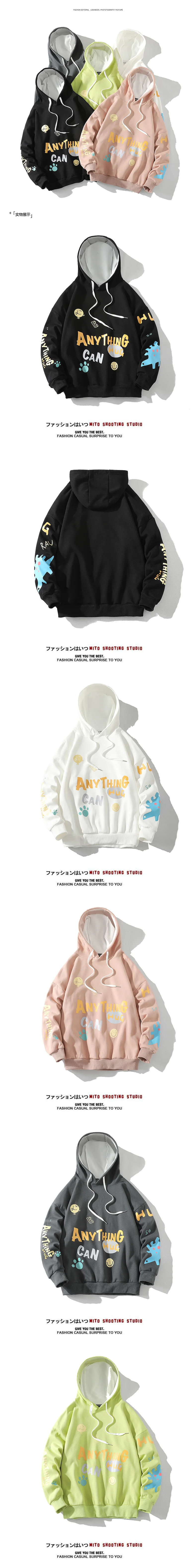 худи Японский стиль Повседневная Весна Осень 2021 белый серый черный свитер с капюшоном мужской толстый флисовый стиль хип-хоп Высокая уличная одежда