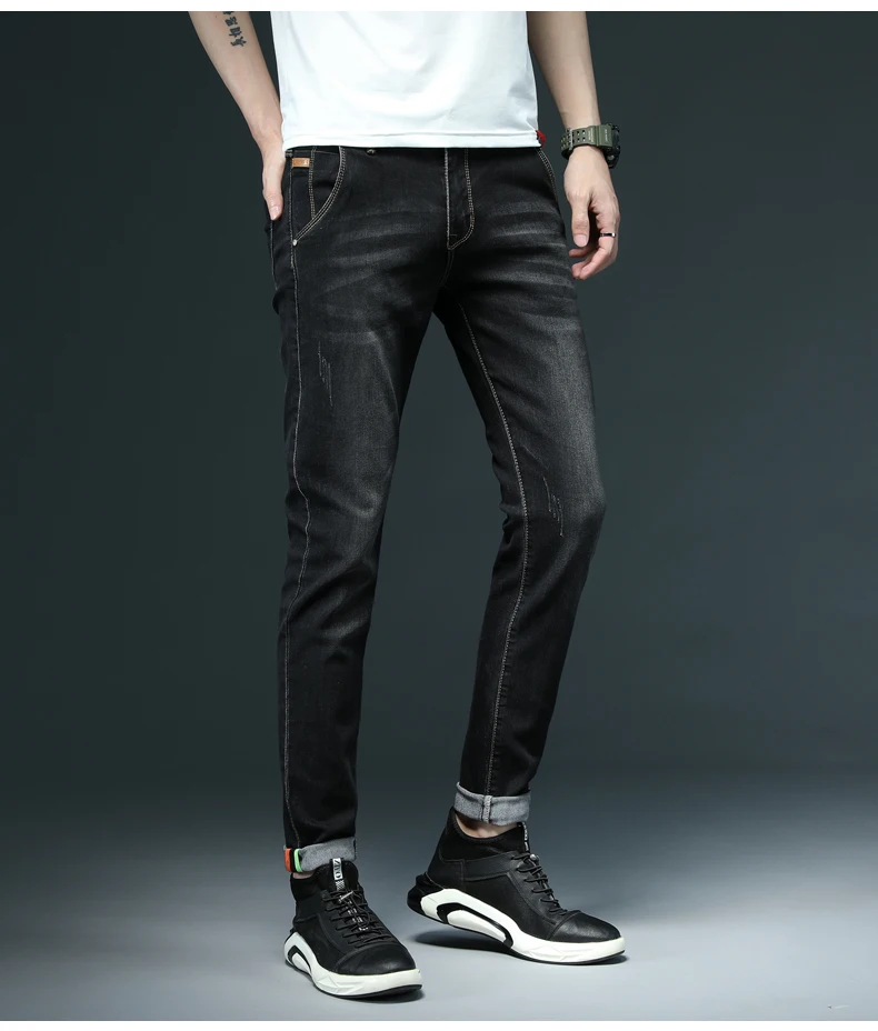 Новые модные джинсовые брюки, однотонные зауженные джинсы, мужские ...