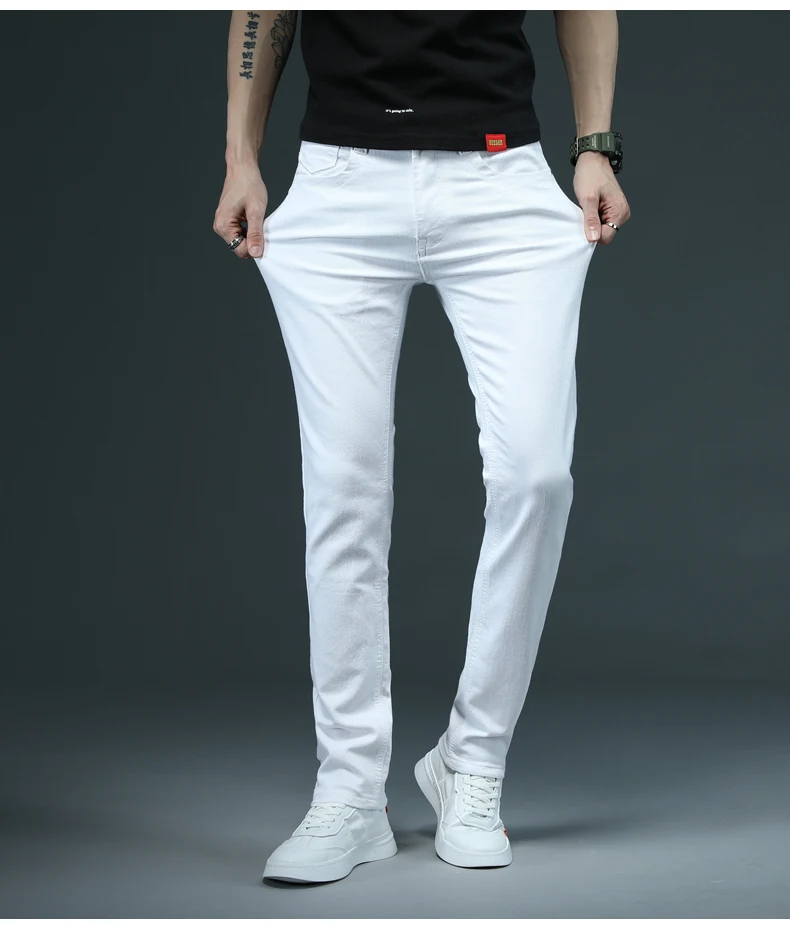 Мужские узкие джинсы, новинка весны, эластичные потертые джинсы, вы...