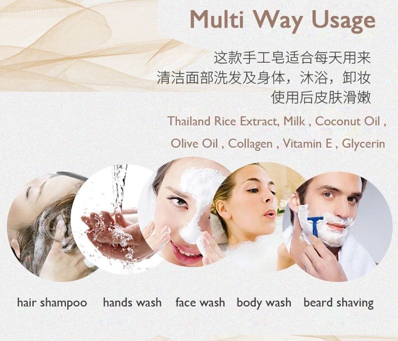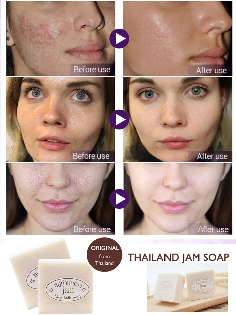 Вареное Отбеливающее мыло ручной работы осветляющее мыло для кожи Витаминное рисовое Отбеливающее мыло для молока Жасминовое рисовое Молочное мыло с джемом предназначено для того, чтобы сделать вашу кожу более белой, гладкой, упругой, яркой, красивой и чистой. Мыло можно использовать и на лице, и на теле. Лучше всего использовать в области подмышек, локтей и коленей, а также в области шеи и паха, где цвет кожи обычно темнее и неровнее.