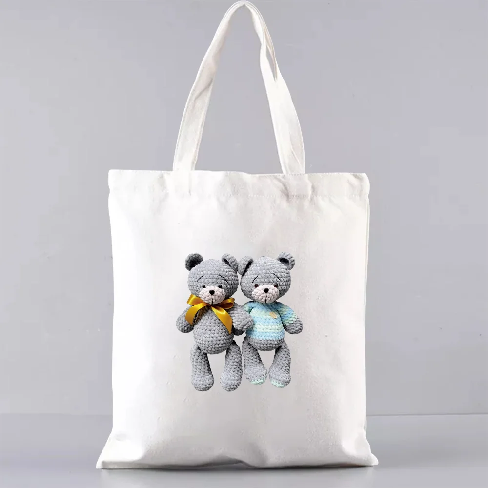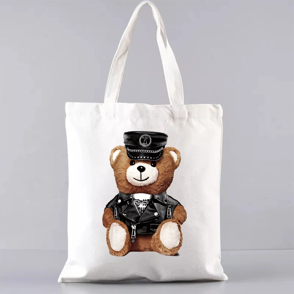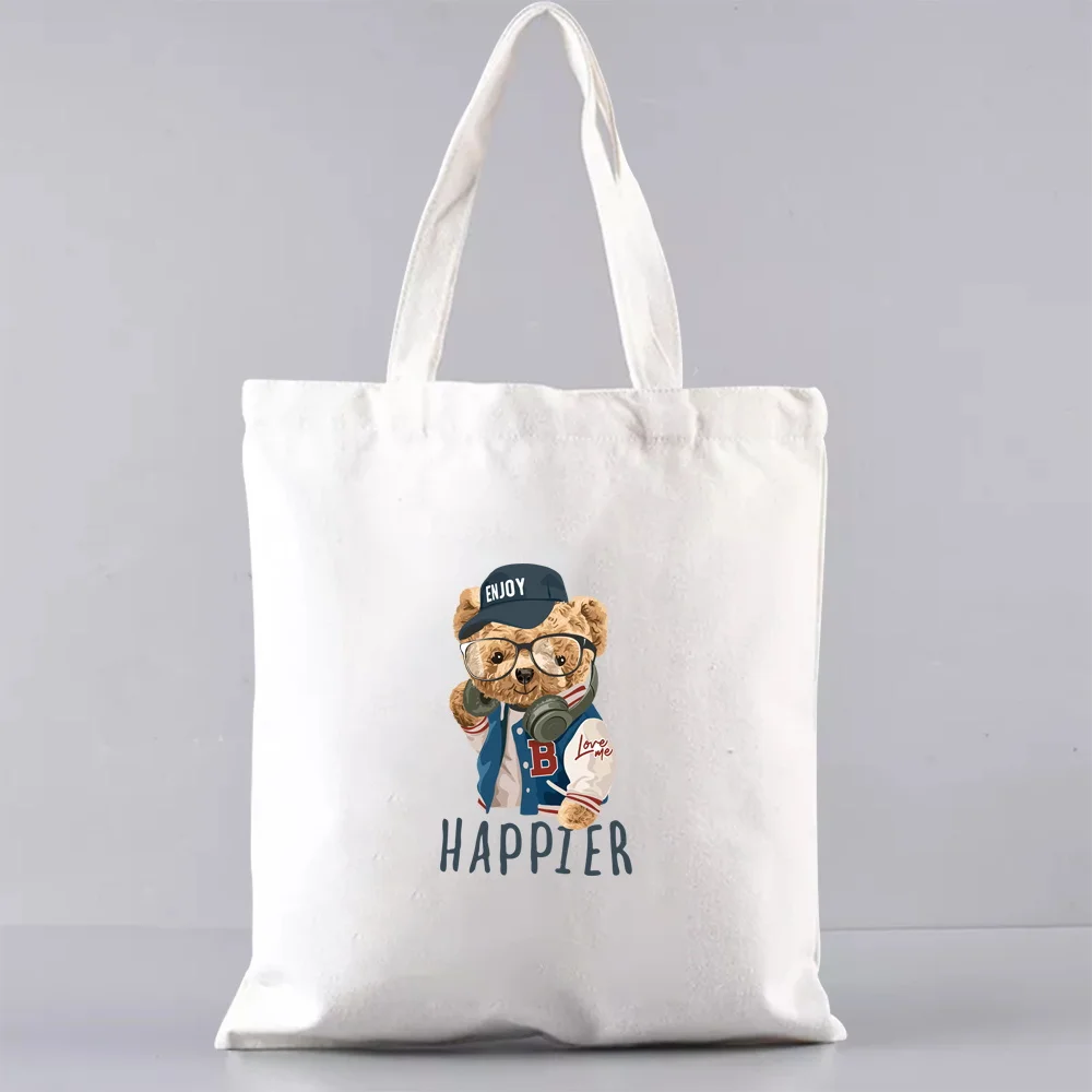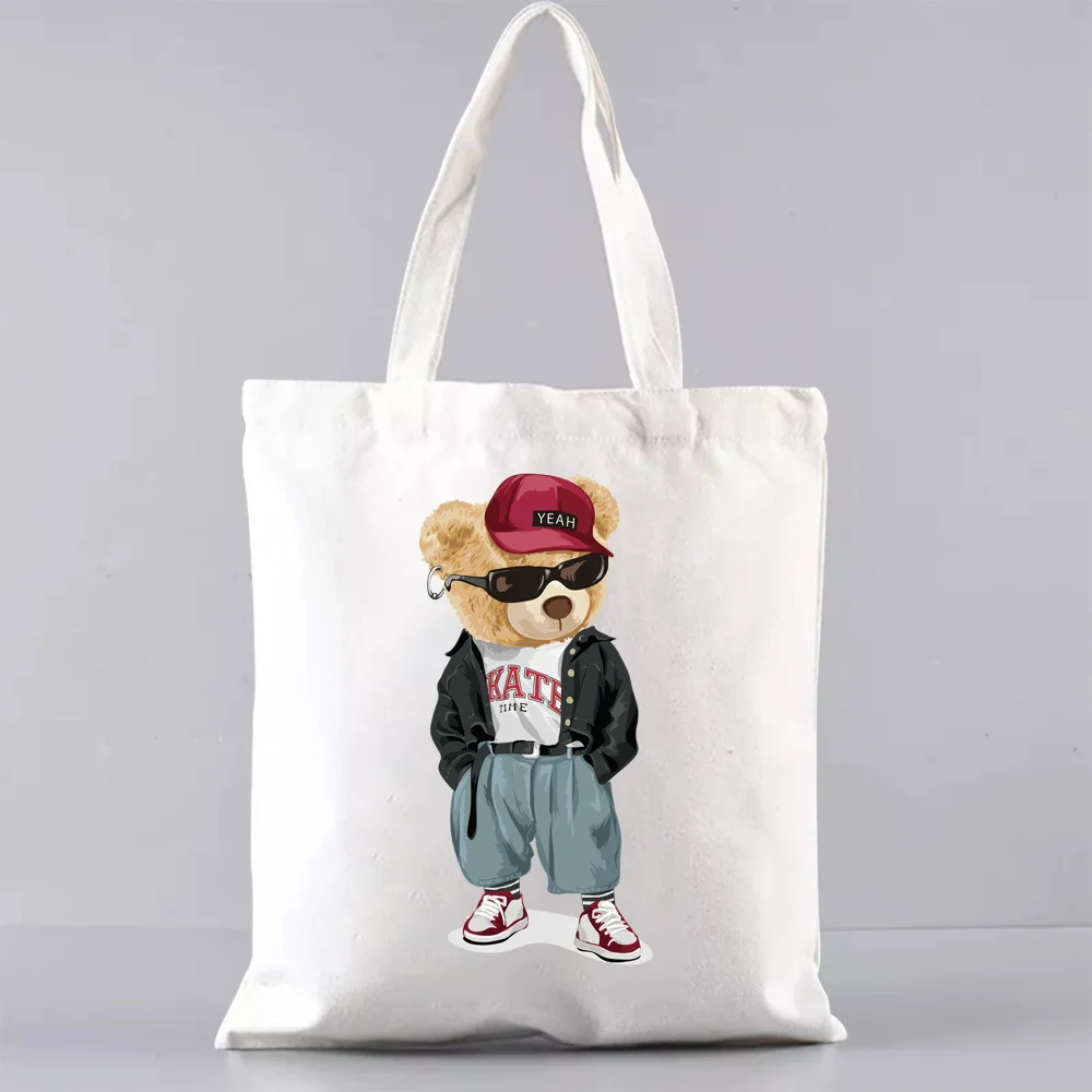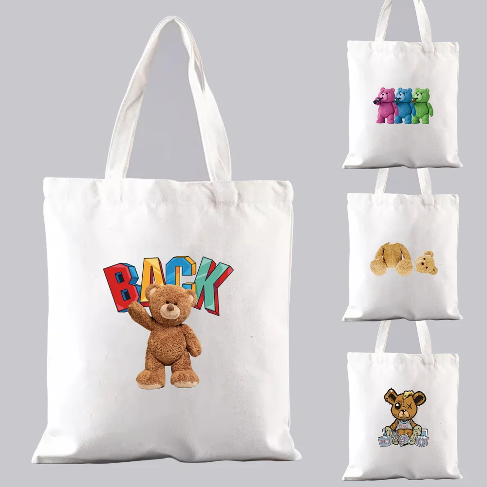 Тканевая сумка-шоппер, белая сумка-тоут, с изображением мишки тедди из мультфильма, наплечная сумка с графическим принтом, Женская Холщовая Сумка