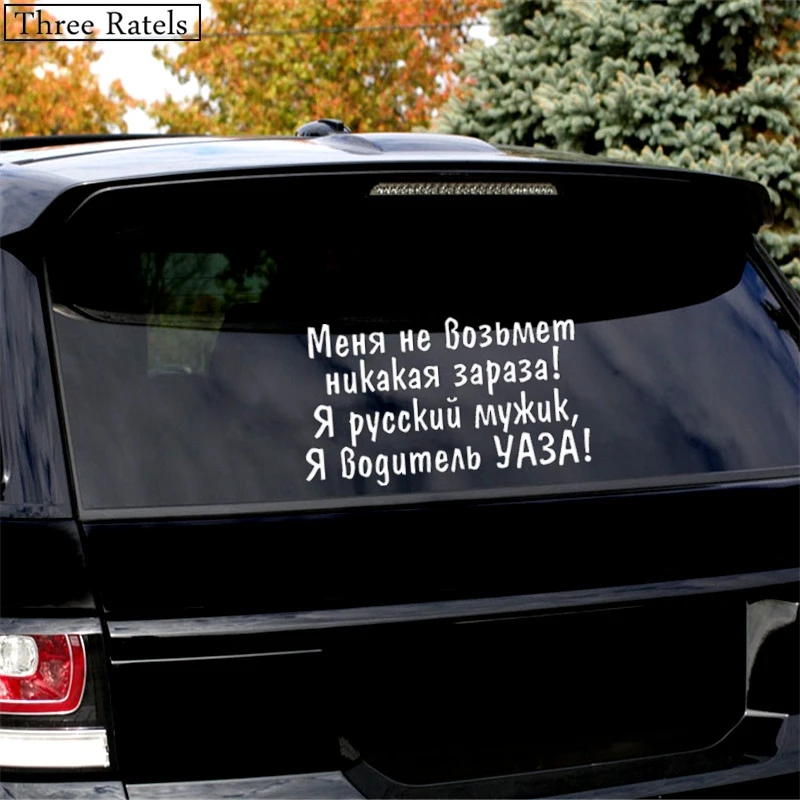 Наклейка на автомобиль Я русский парень и я УАЗ, водонепроницаемая, 41,4*20 см
